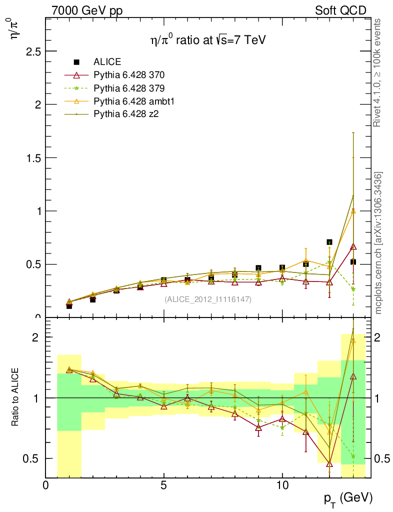 Soft QCD (inelastic) : Identified Particles : Ratios : η/π0 vs pT