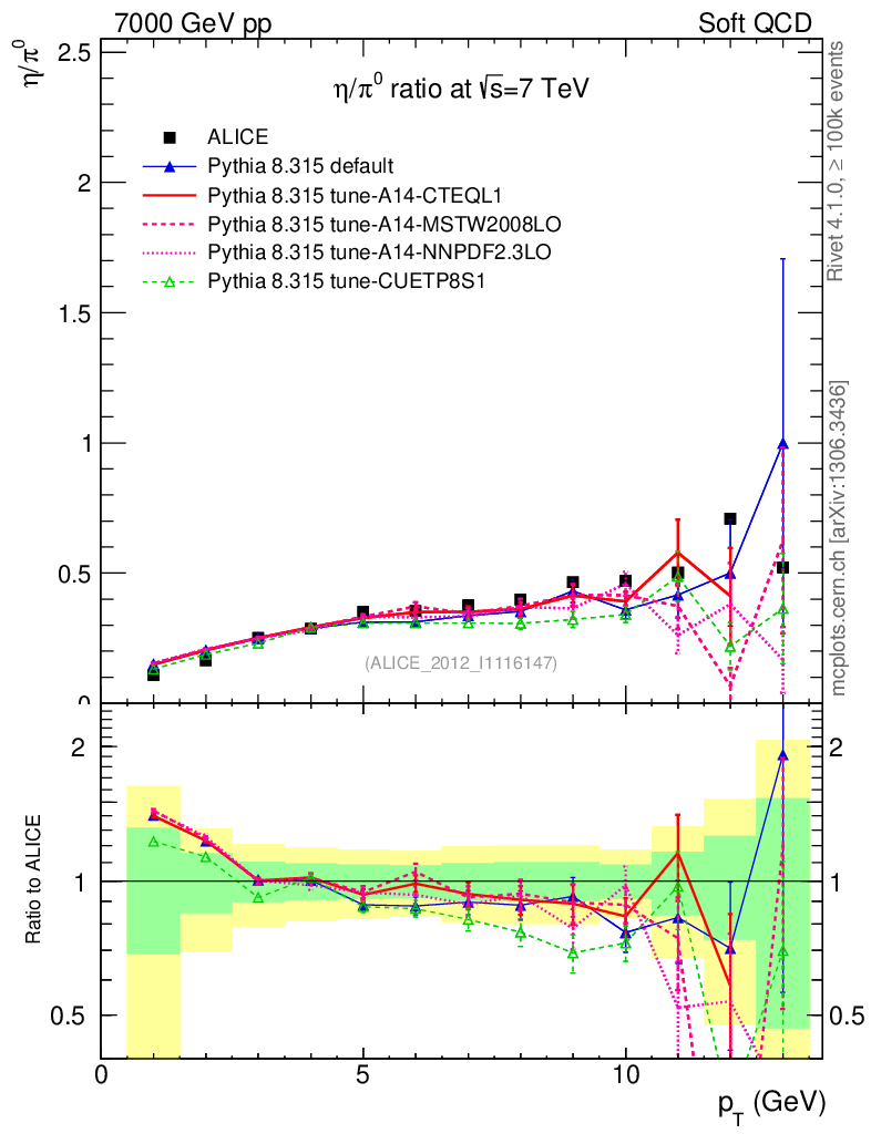 Soft QCD (inelastic) : Identified Particles : Ratios : η/π0 vs pT
