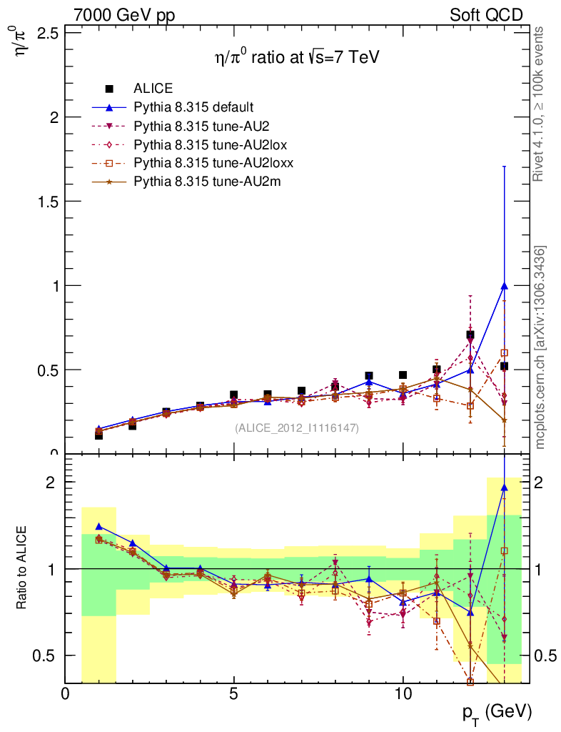 Soft QCD (inelastic) : Identified Particles : Ratios : η/π0 vs pT