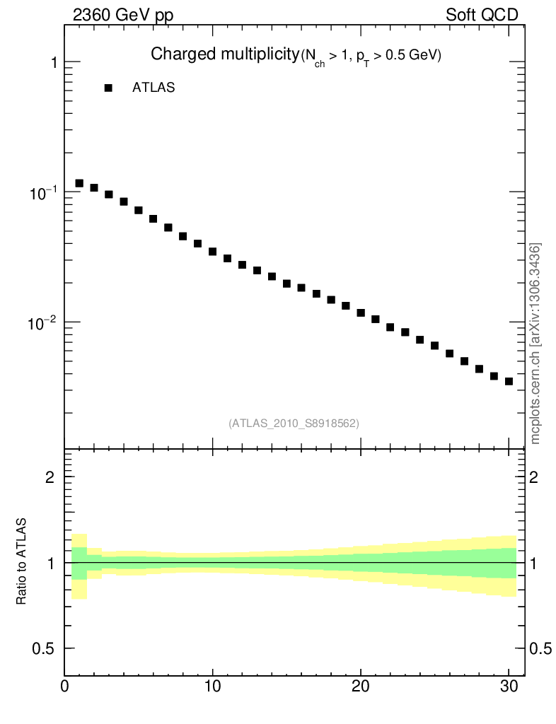 Plot of nch in 2360 GeV pp collisions