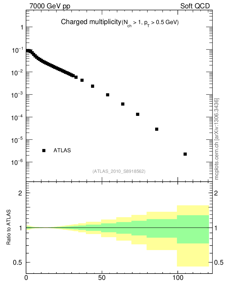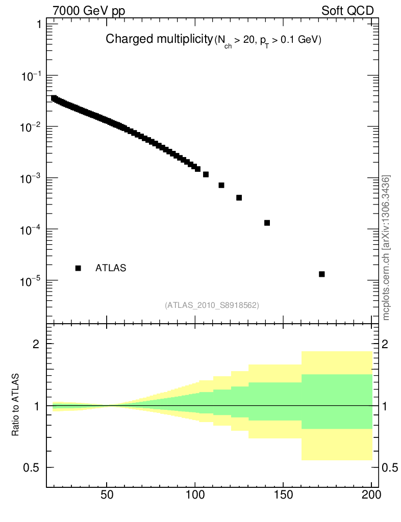 Plot of nch in 7000 GeV pp collisions