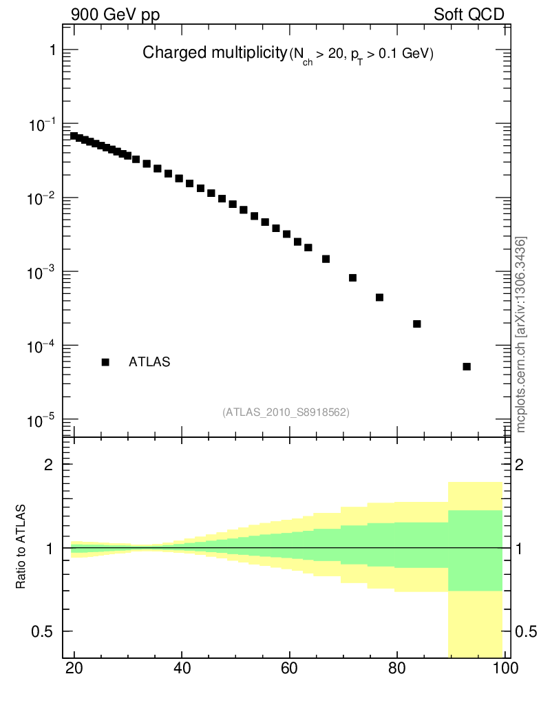 Plot of nch in 900 GeV pp collisions