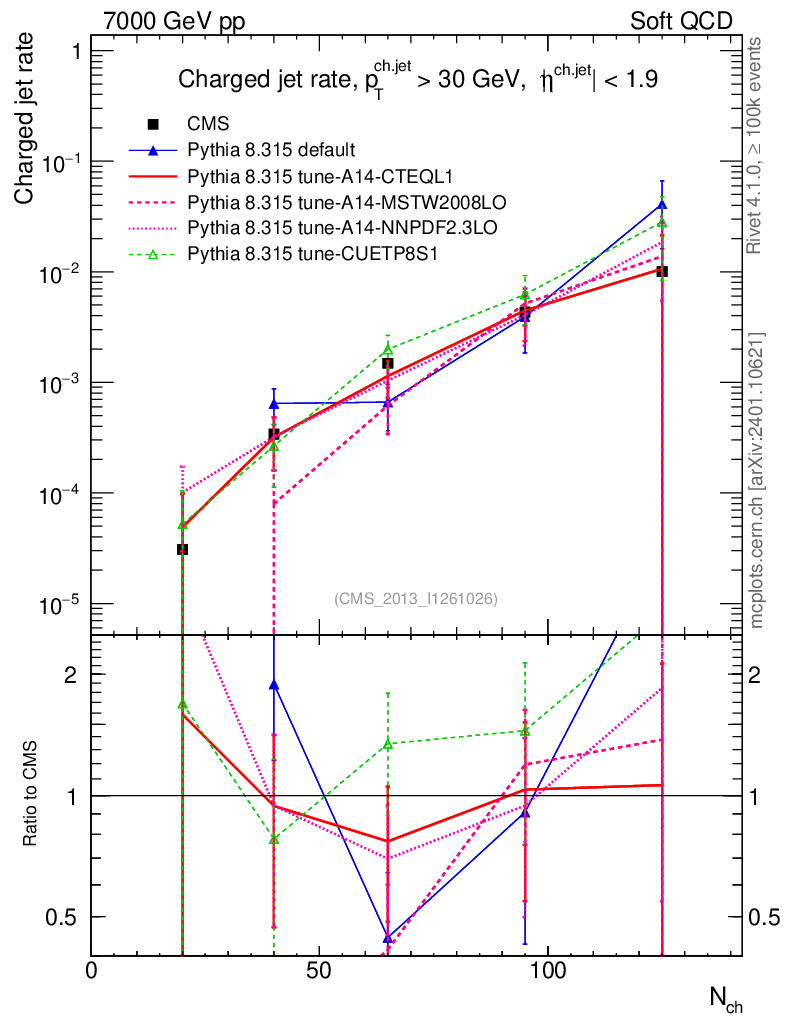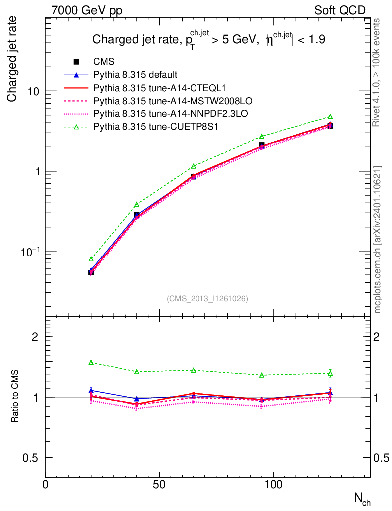Soft QCD (inelastic) : Jet Multiplicities : Nj vs Nch