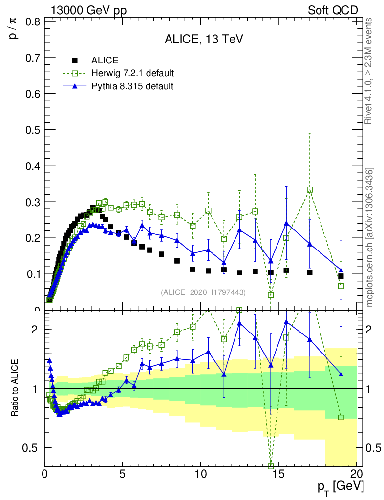 Soft QCD (inelastic) : Identified Particles : Ratios : p/π+ vs pT