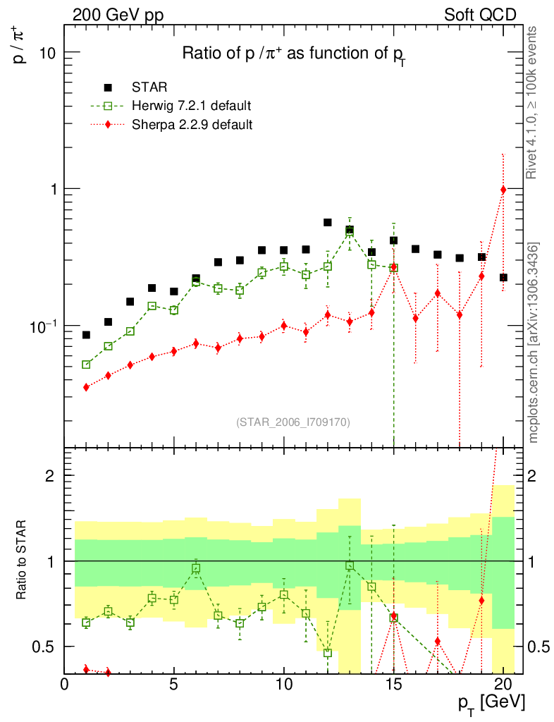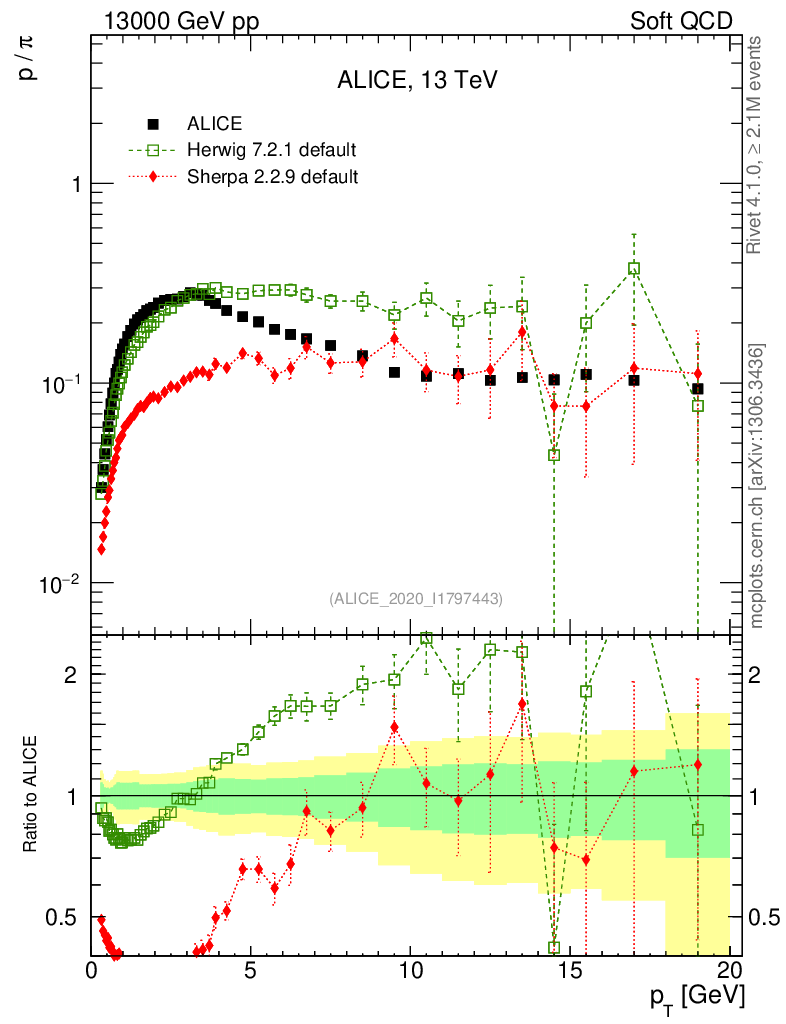 Soft QCD (inelastic) : Identified Particles : Ratios : p/π+ vs pT