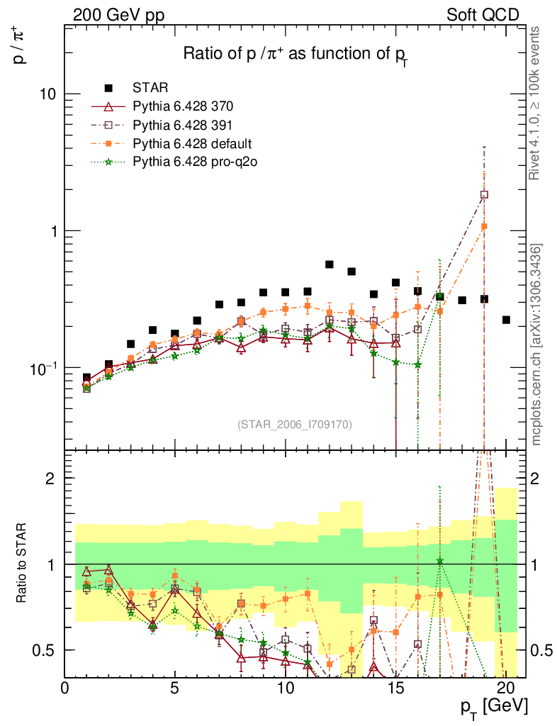 Soft QCD (inelastic) : Identified Particles : Ratios : p/π+ vs pT