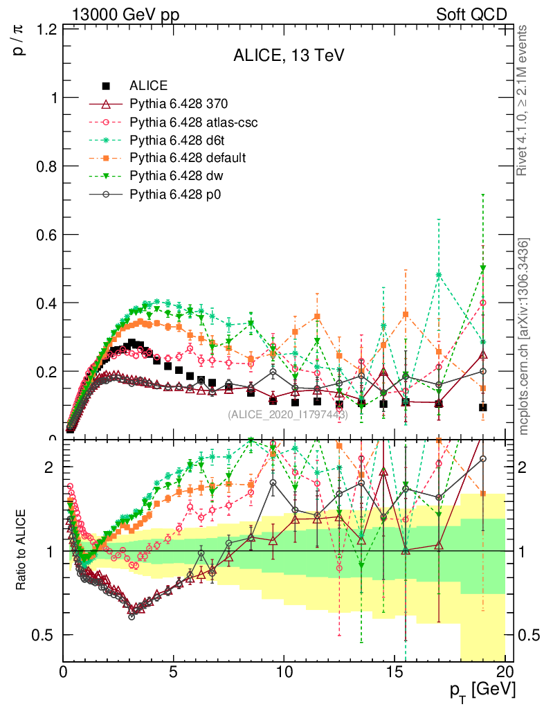 Soft QCD (inelastic) : Identified Particles : Ratios : p/π+ vs pT