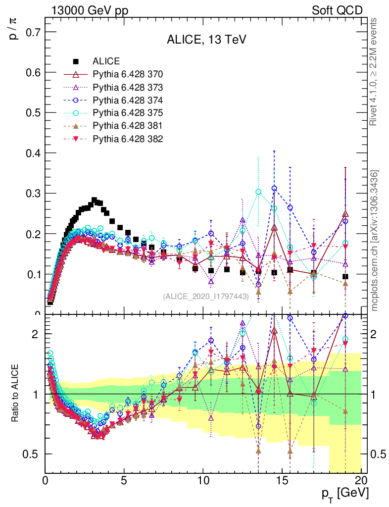 Soft QCD (inelastic) : Identified Particles : Ratios : p/π+ vs pT