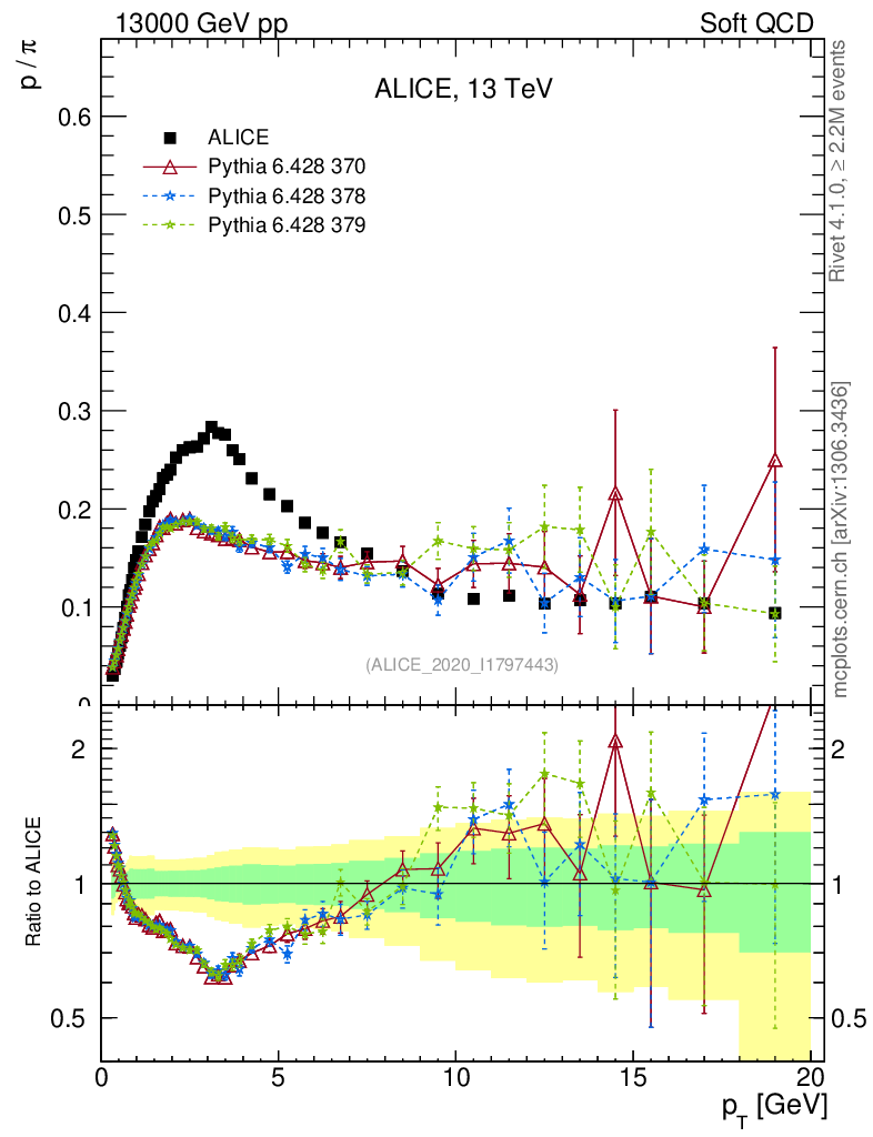 Soft QCD (inelastic) : Identified Particles : Ratios : p/π+ vs pT