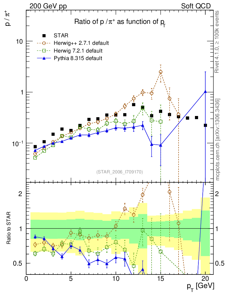 Soft QCD (inelastic) : Identified Particles : Ratios : p/π+ vs pT