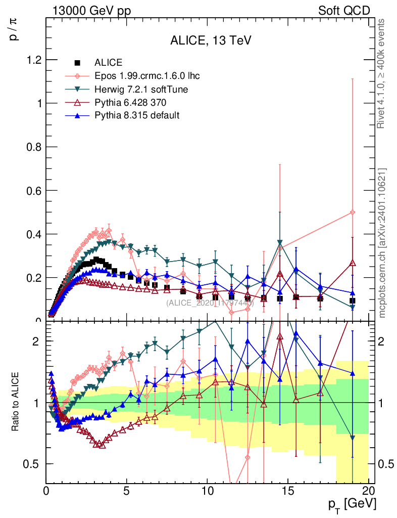Soft QCD (inelastic) : Identified Particles : Ratios : p/π+ vs pT