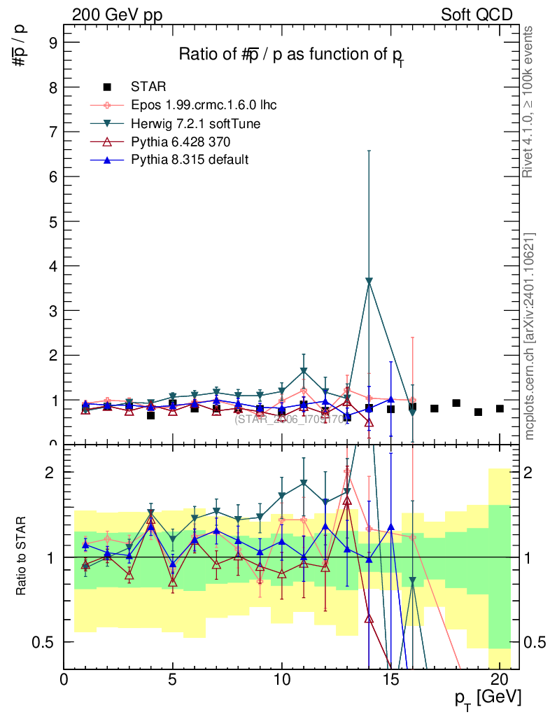 Soft QCD (inelastic) : Identified Particles : Ratios : pbar/p vs pT