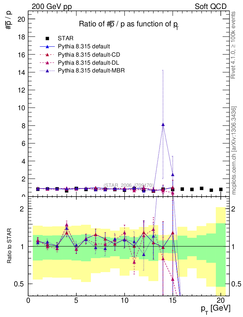 Soft QCD (inelastic) : Identified Particles : Ratios : pbar/p vs pT