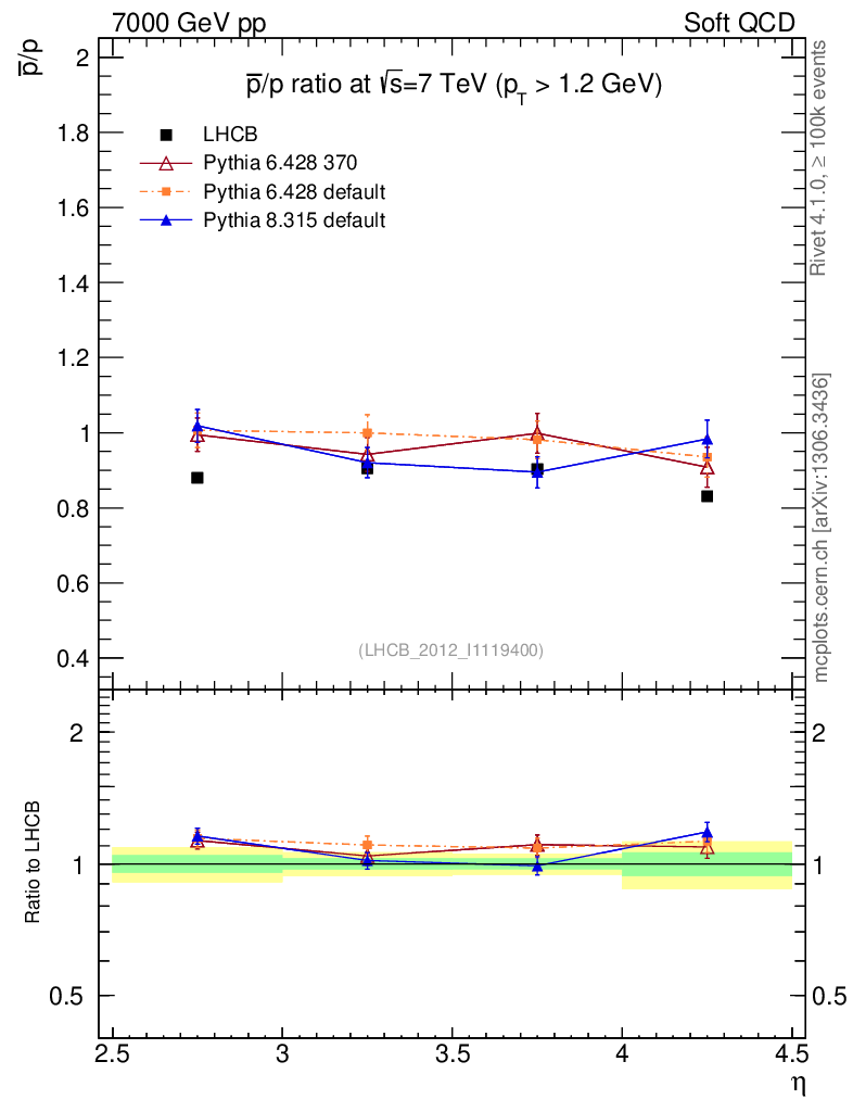 Soft QCD (inelastic) : Identified Particles : Ratios : pbar/p vs |y|