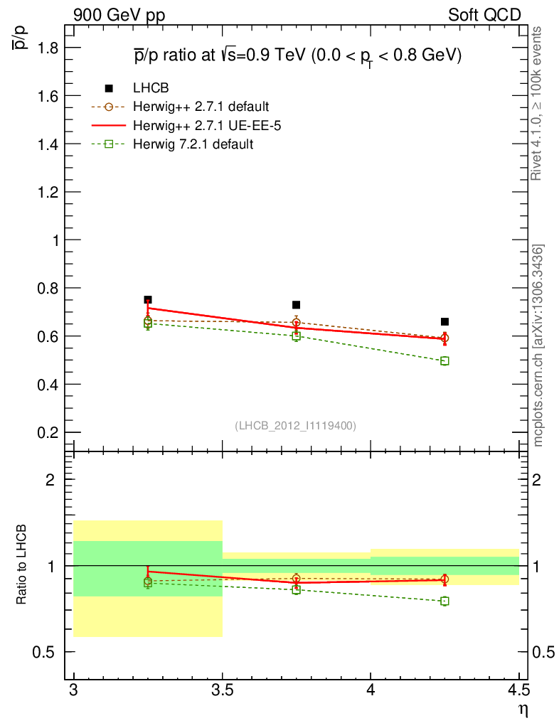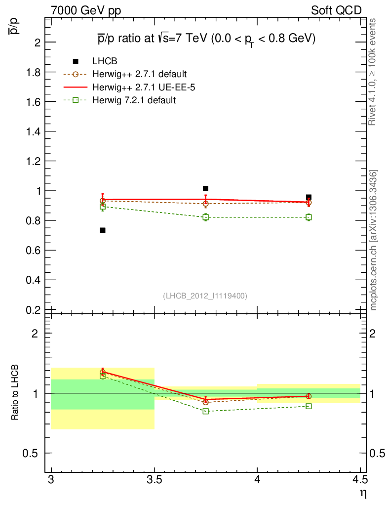 Soft QCD (inelastic) : Identified Particles : Ratios : pbar/p vs |y|