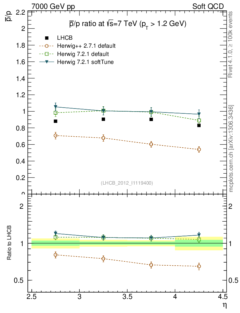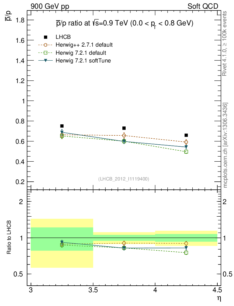 Soft QCD (inelastic) : Identified Particles : Ratios : pbar/p vs |y|