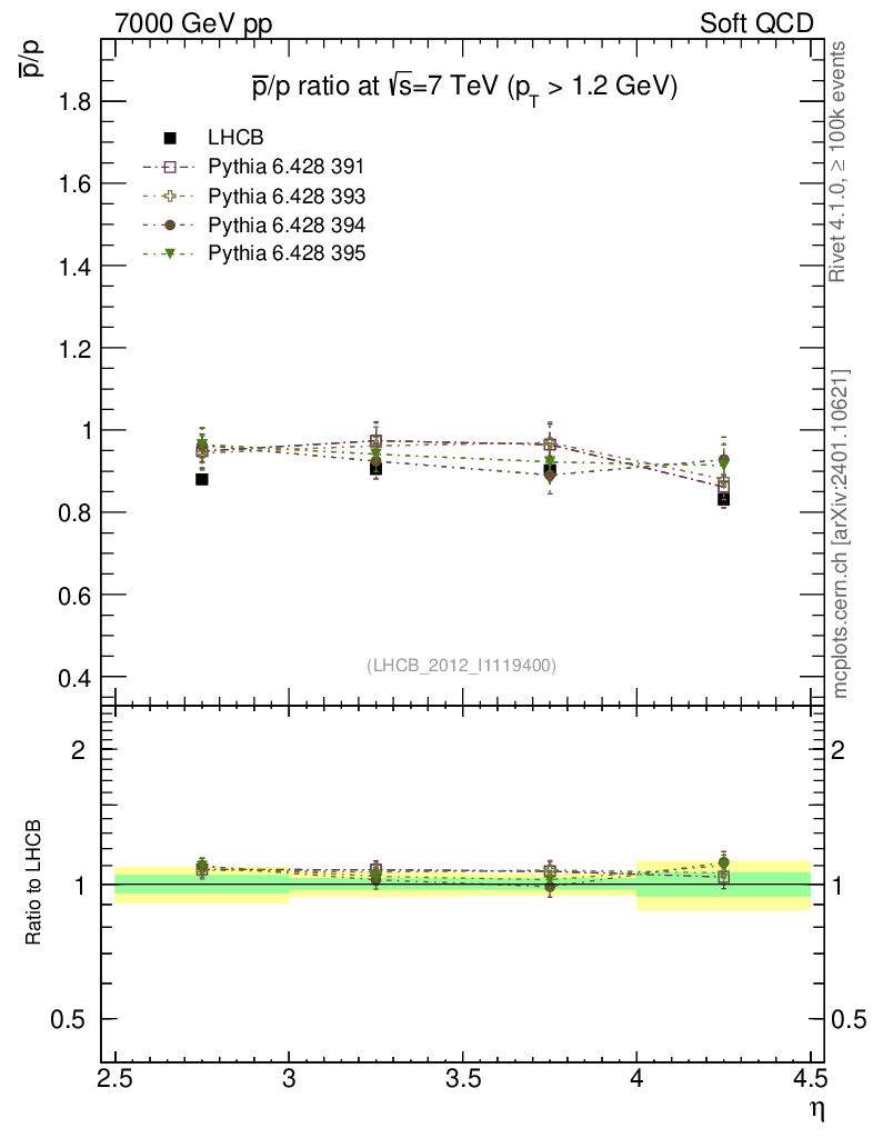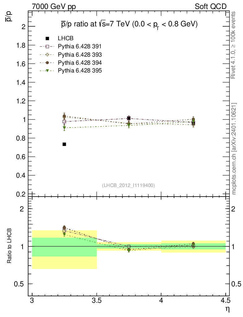 Soft QCD (inelastic) : Identified Particles : Ratios : pbar/p vs |y|