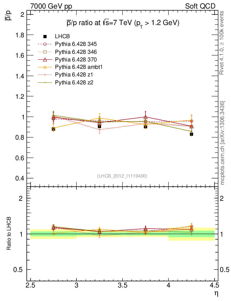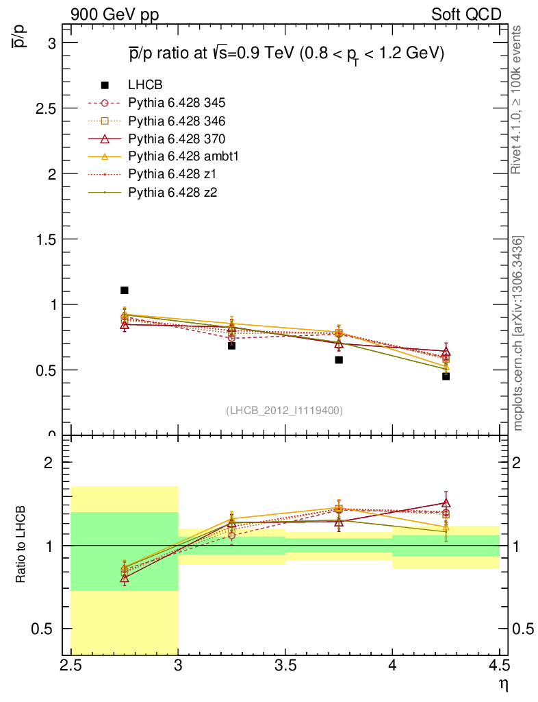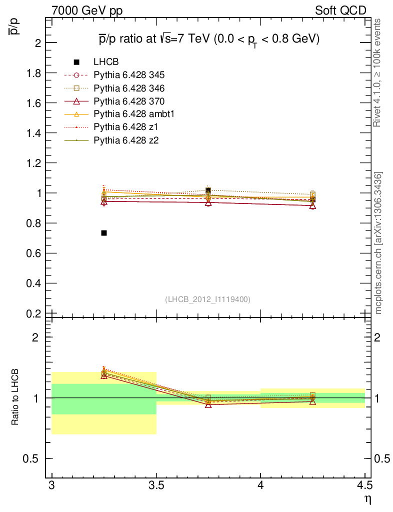 Soft QCD (inelastic) : Identified Particles : Ratios : pbar/p vs |y|