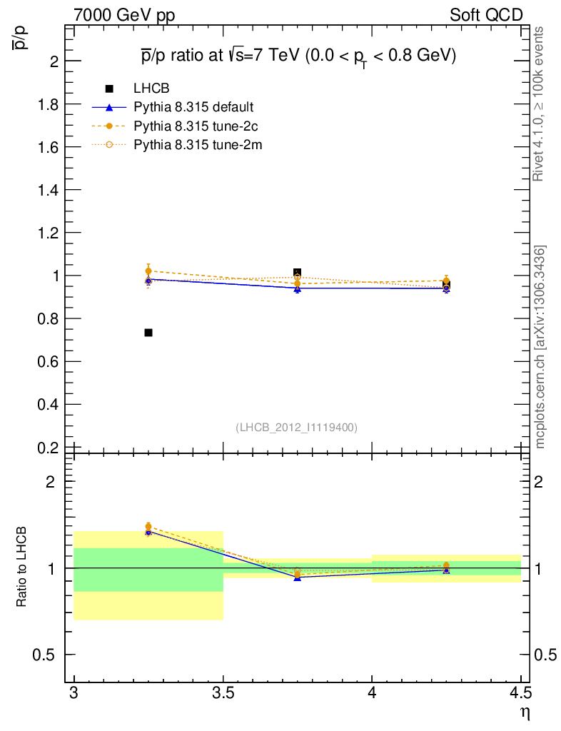 Soft QCD (inelastic) : Identified Particles : Ratios : pbar/p vs |y|