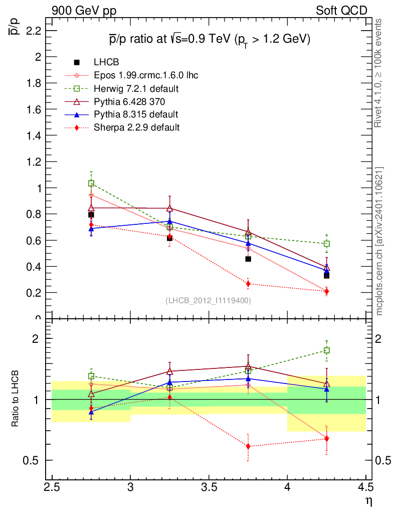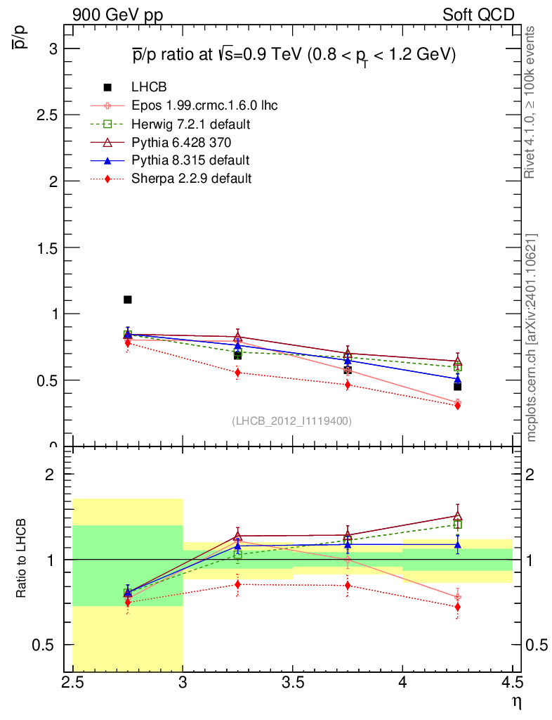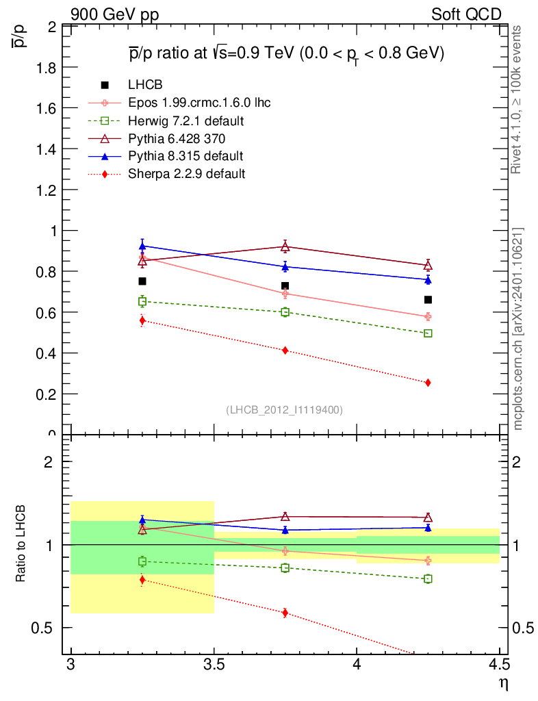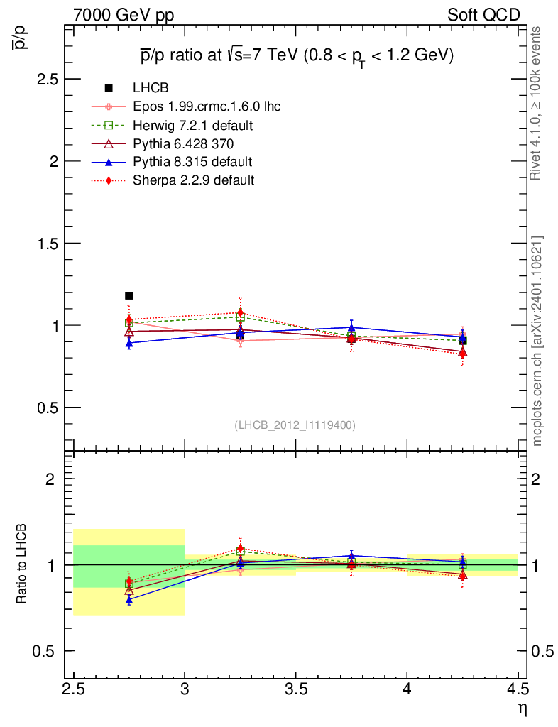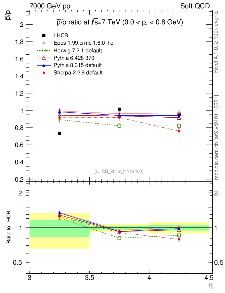 Soft QCD (inelastic) : Identified Particles : Ratios : pbar/p vs |y|
