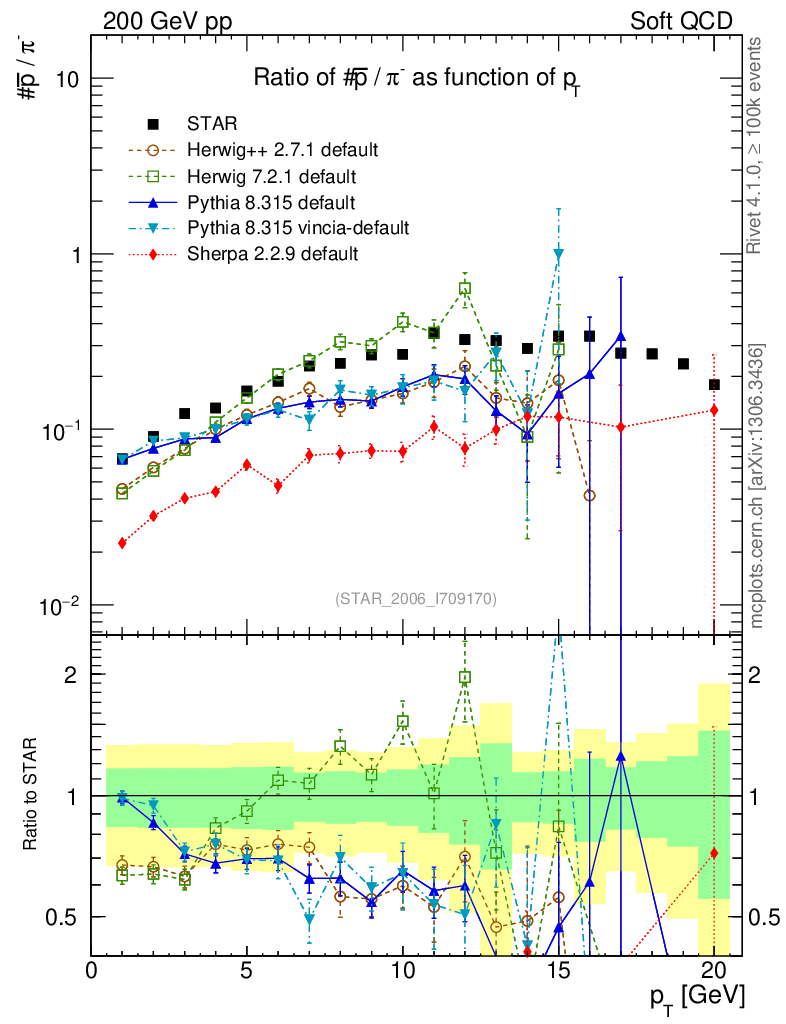 Soft QCD (inelastic) : Identified Particles : Ratios : pbar/π vs pT