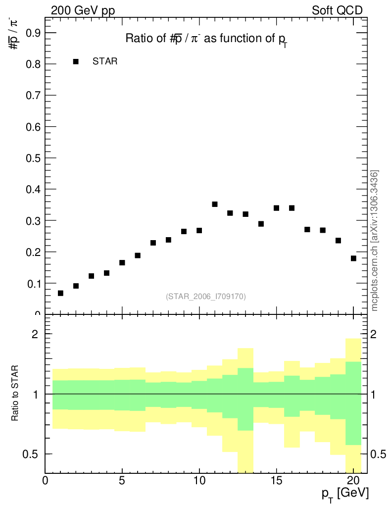 Soft QCD (inelastic) : Identified Particles : Ratios : pbar/π vs pT