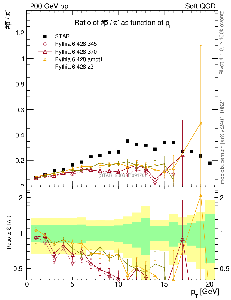 Soft QCD (inelastic) : Identified Particles : Ratios : pbar/π vs pT