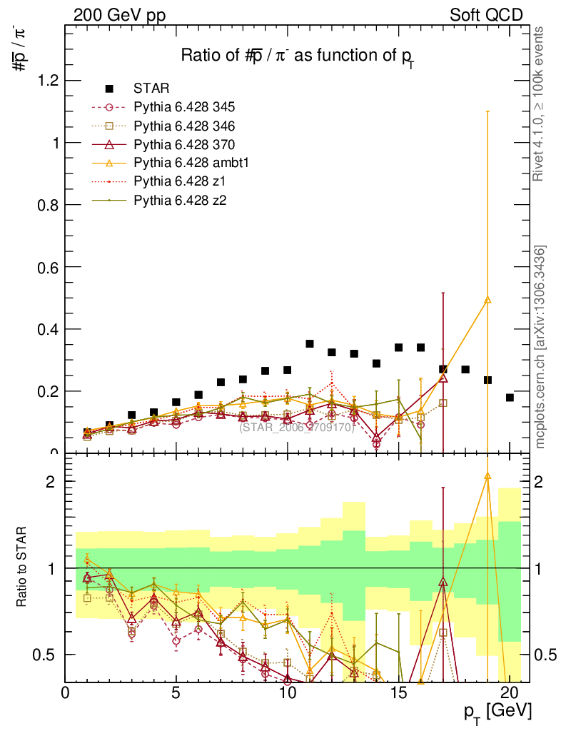 Soft QCD (inelastic) : Identified Particles : Ratios : pbar/π vs pT