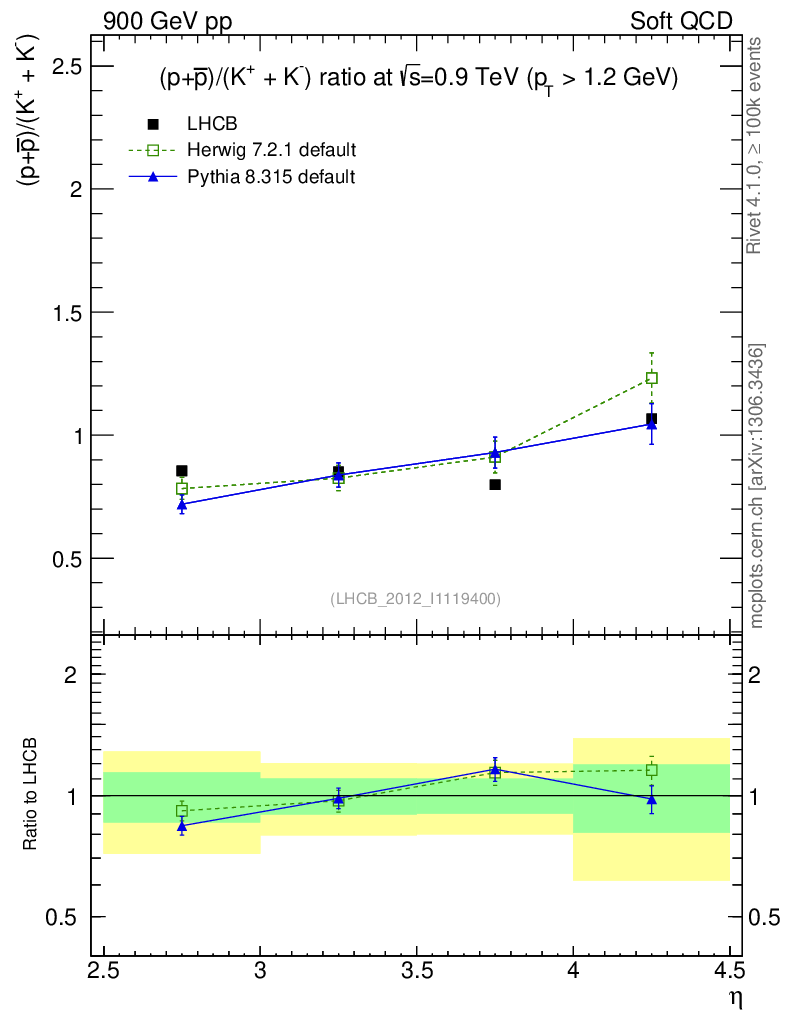 Soft QCD (inelastic) : Identified Particles : Ratios : (pbar+p)/(K-+K+) vs |y|