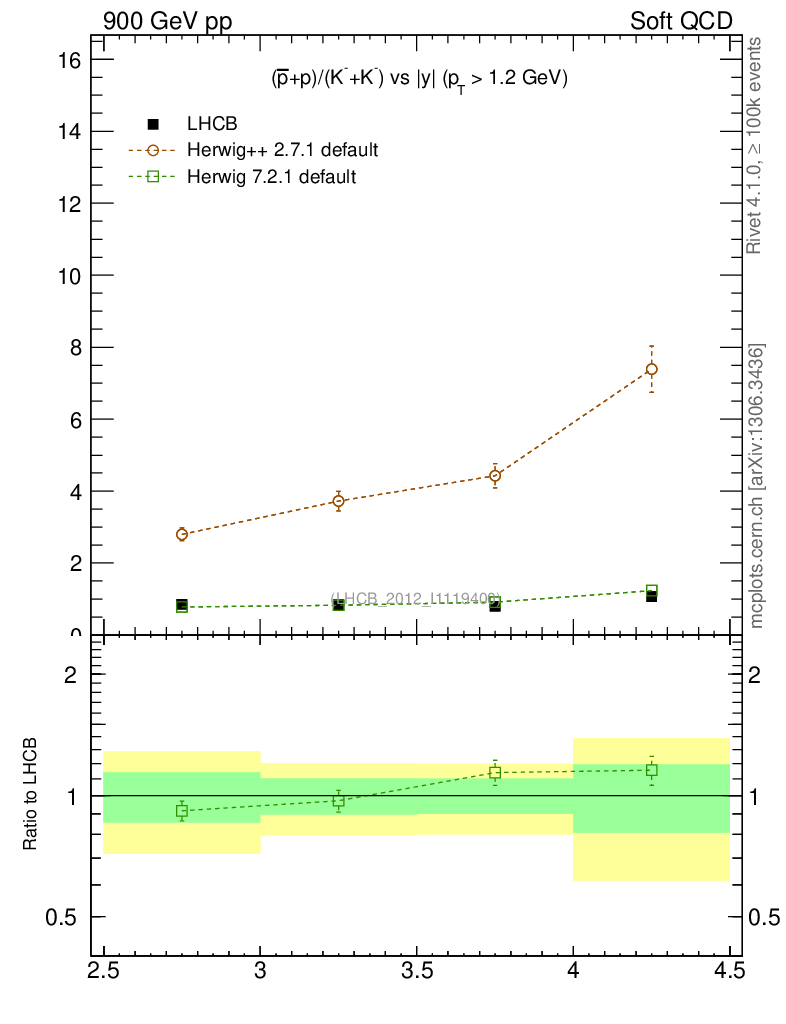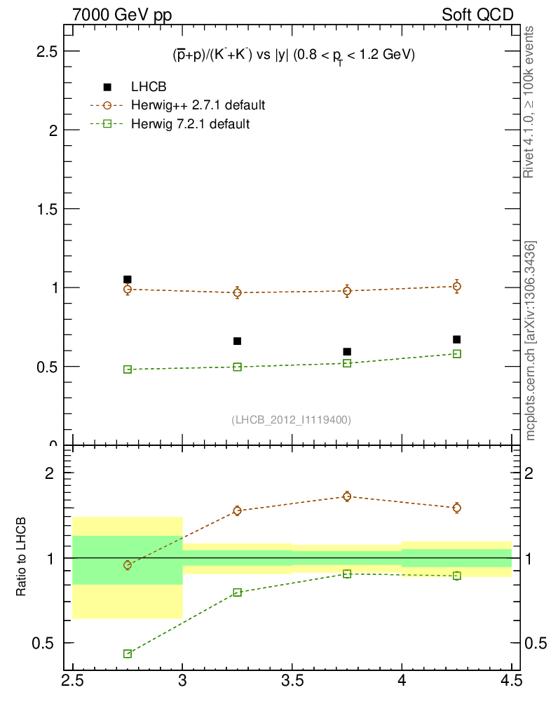 Soft QCD (inelastic) : Identified Particles : Ratios : (pbar+p)/(K-+K+) vs |y|