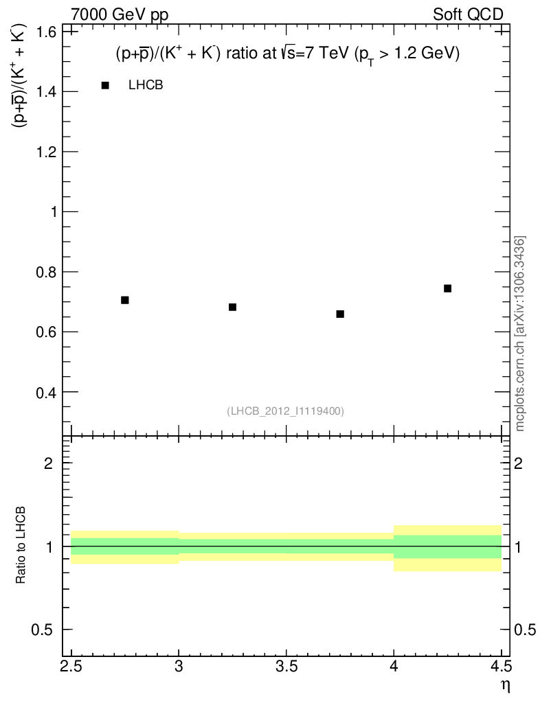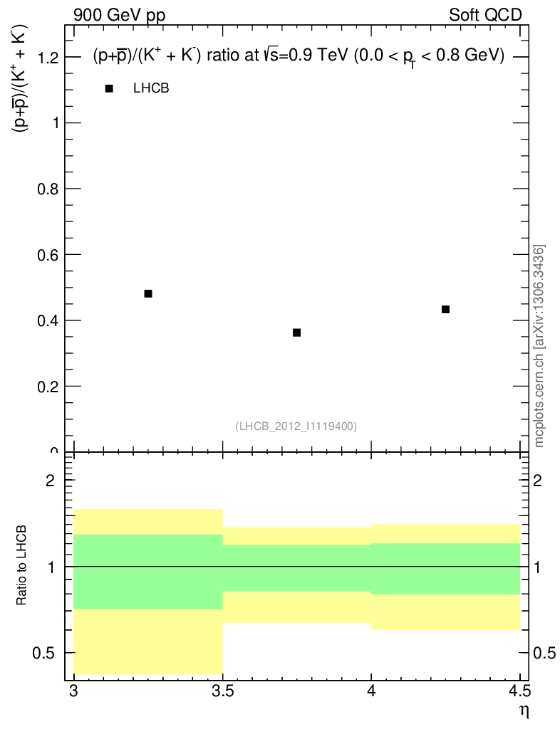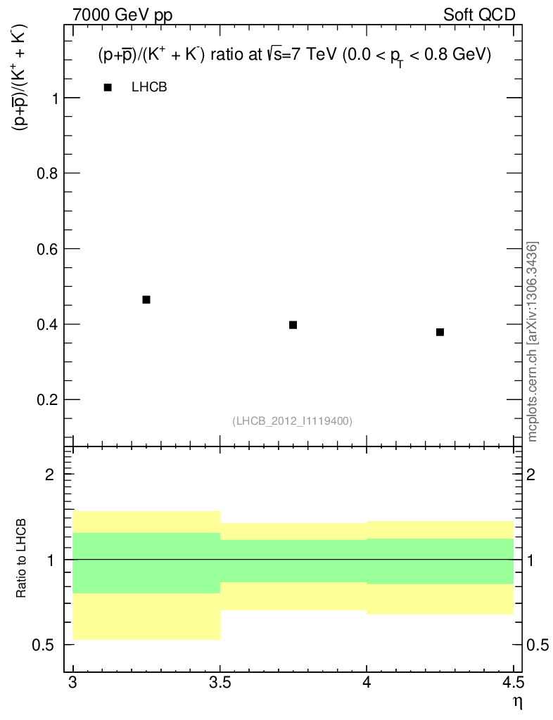 Soft QCD (inelastic) : Identified Particles : Ratios : (pbar+p)/(K-+K+) vs |y|