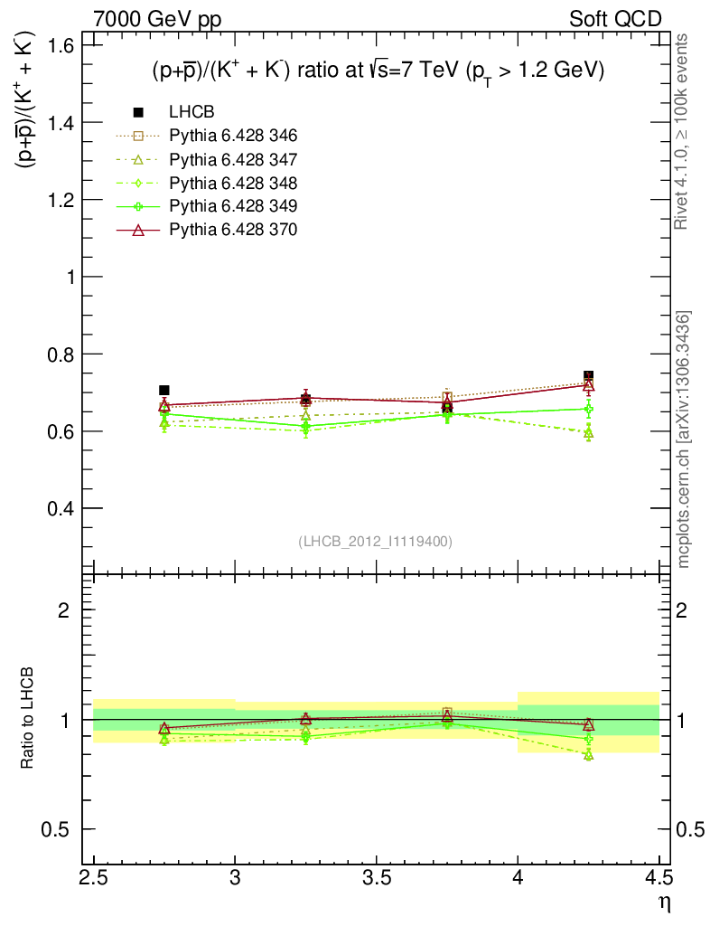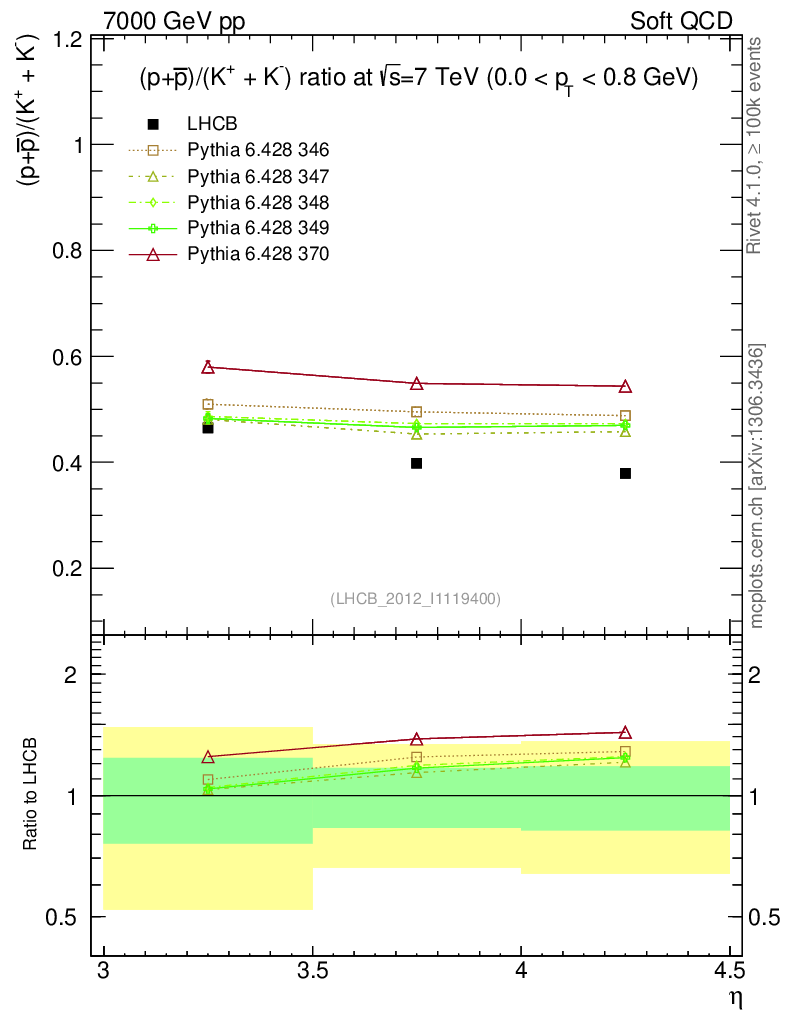 Soft QCD (inelastic) : Identified Particles : Ratios : (pbar+p)/(K-+K+) vs |y|
