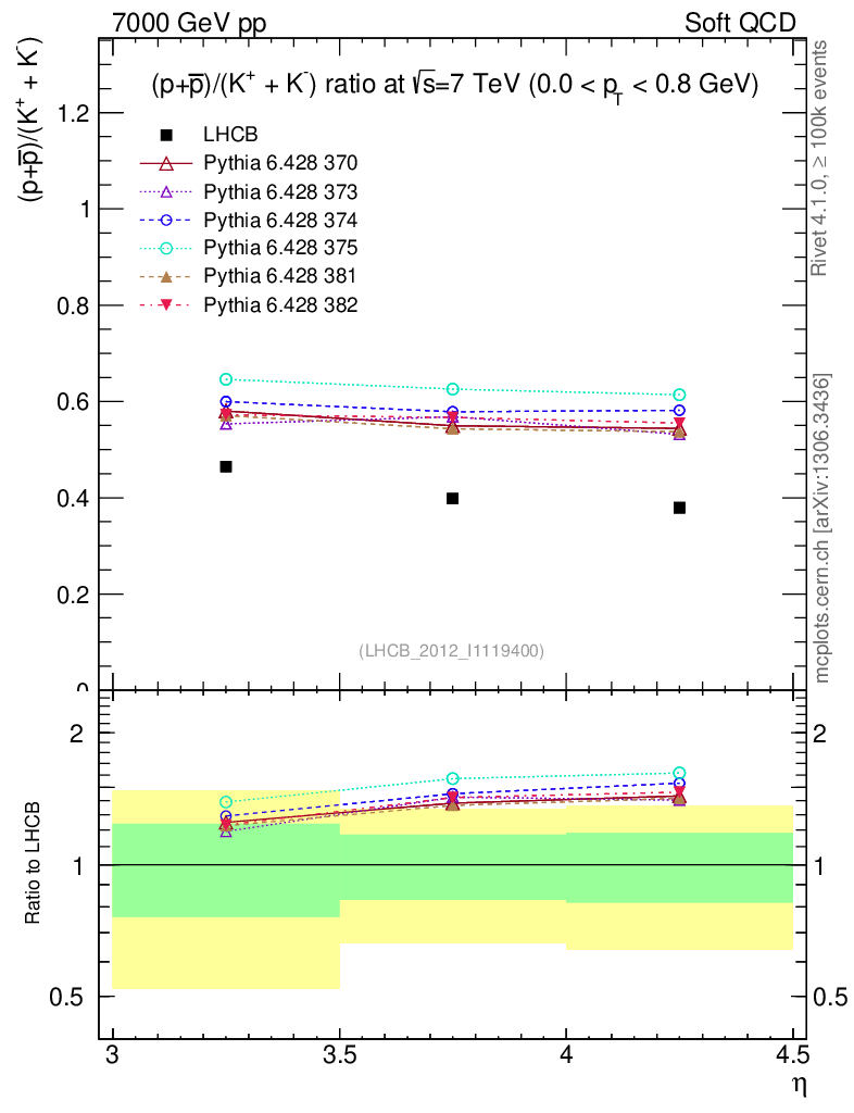 Soft QCD (inelastic) : Identified Particles : Ratios : (pbar+p)/(K-+K+) vs |y|