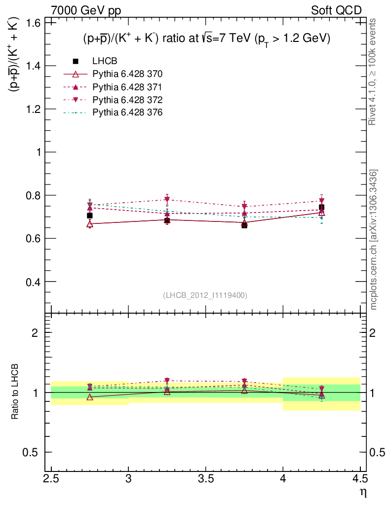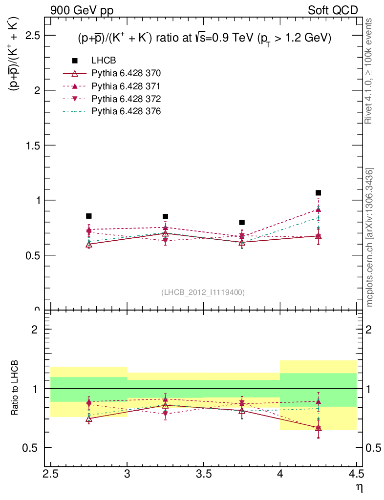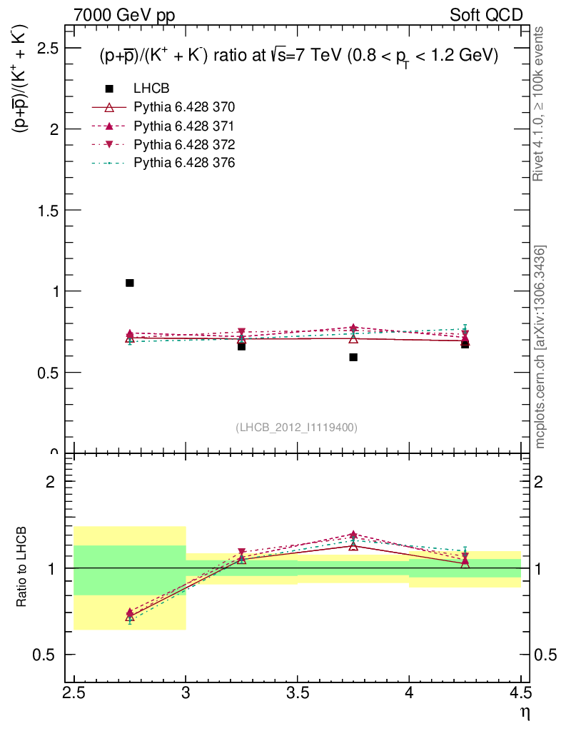 Soft QCD (inelastic) : Identified Particles : Ratios : (pbar+p)/(K-+K+) vs |y|