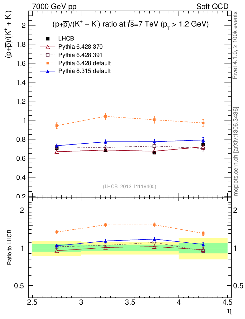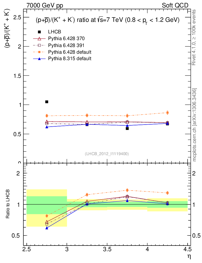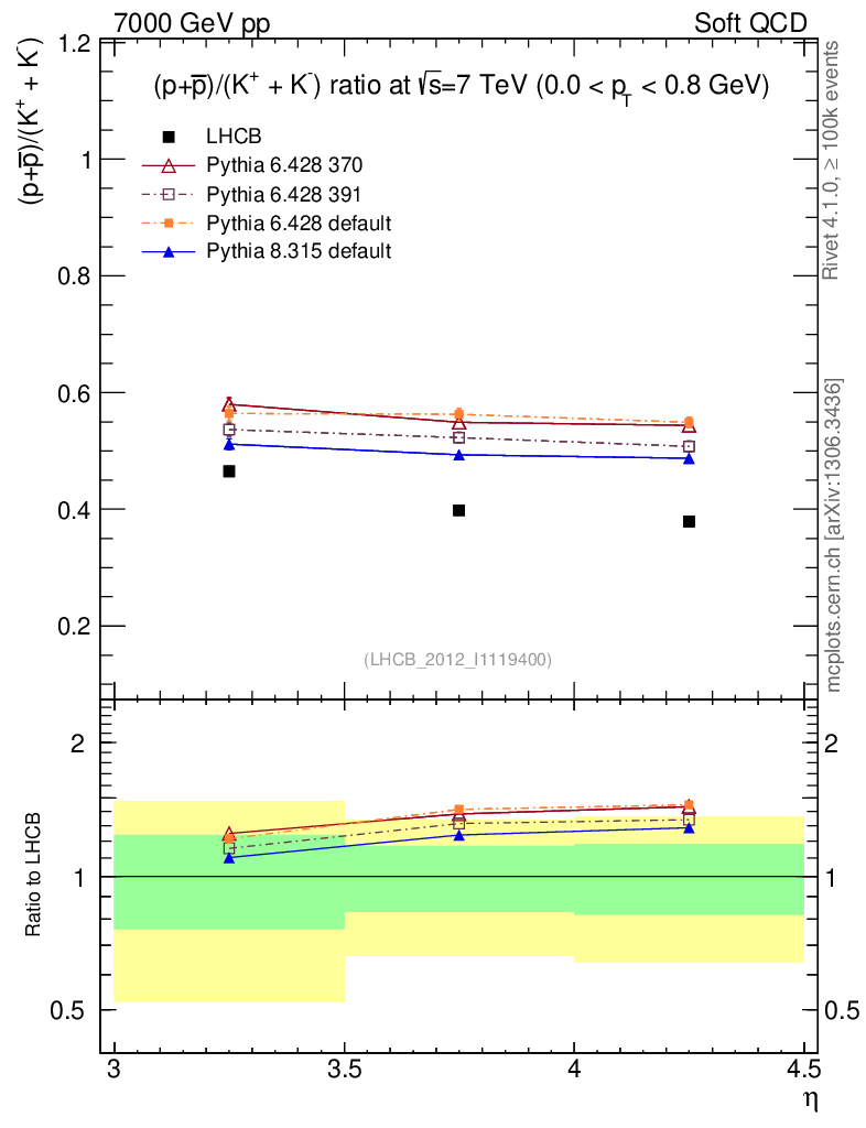 Soft QCD (inelastic) : Identified Particles : Ratios : (pbar+p)/(K-+K+) vs |y|