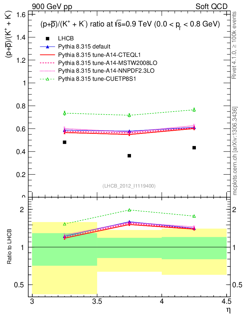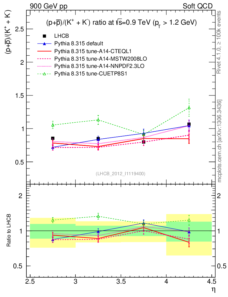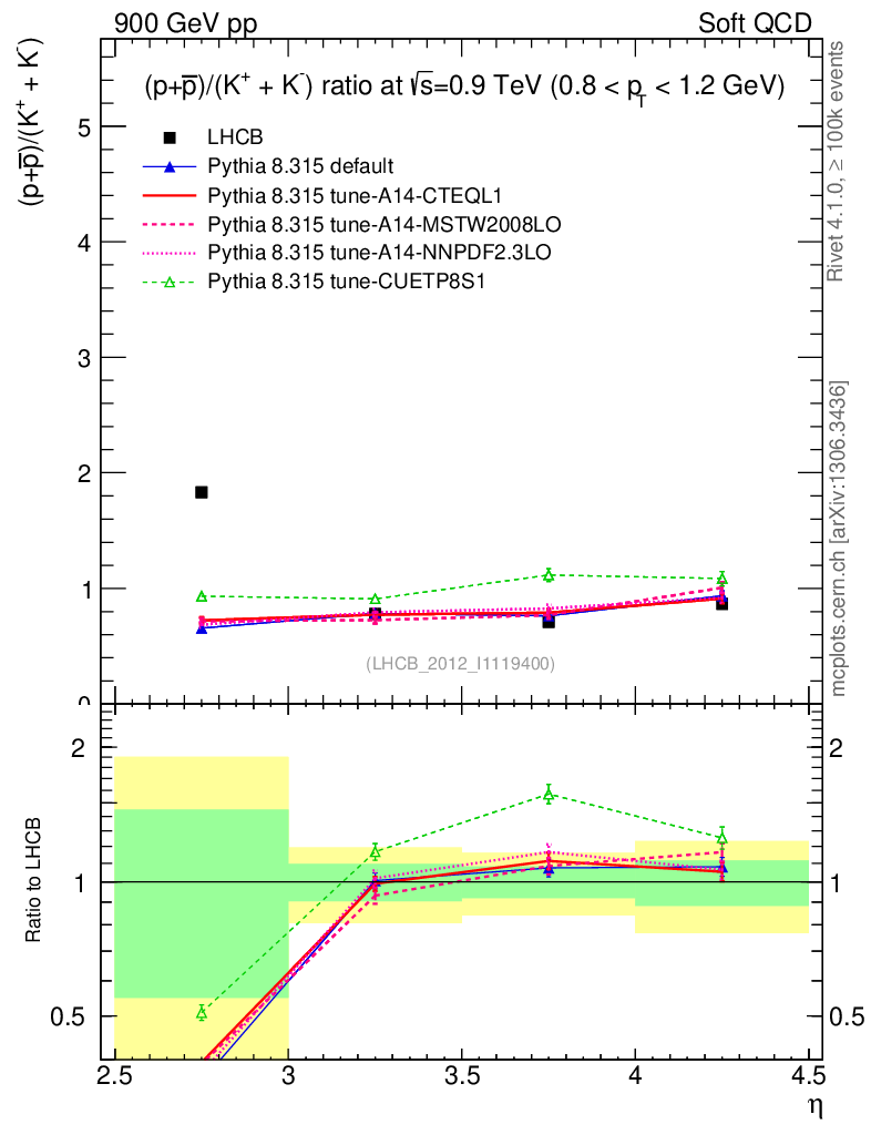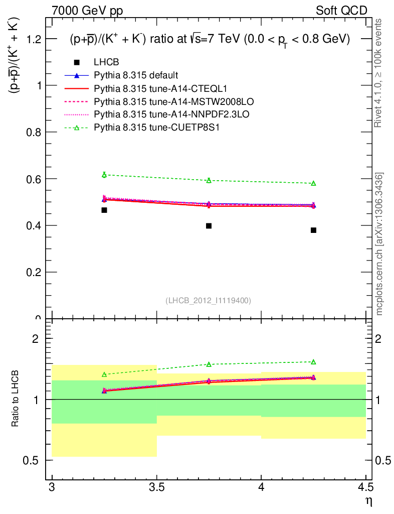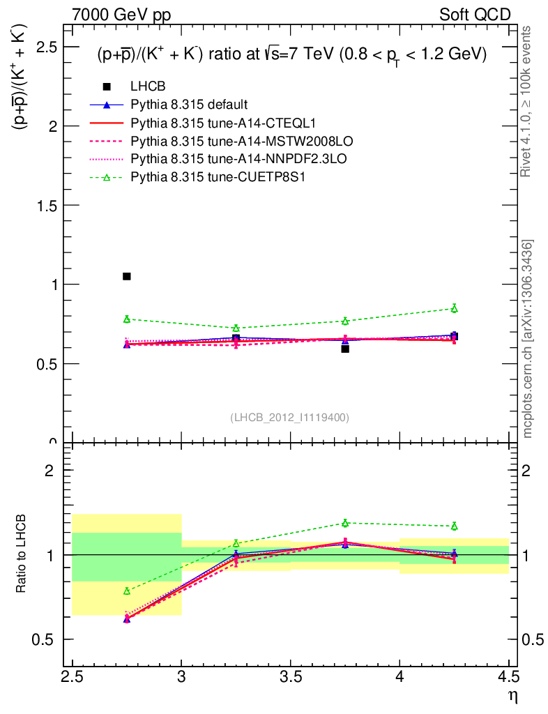 Soft QCD (inelastic) : Identified Particles : Ratios : (pbar+p)/(K-+K+) vs |y|