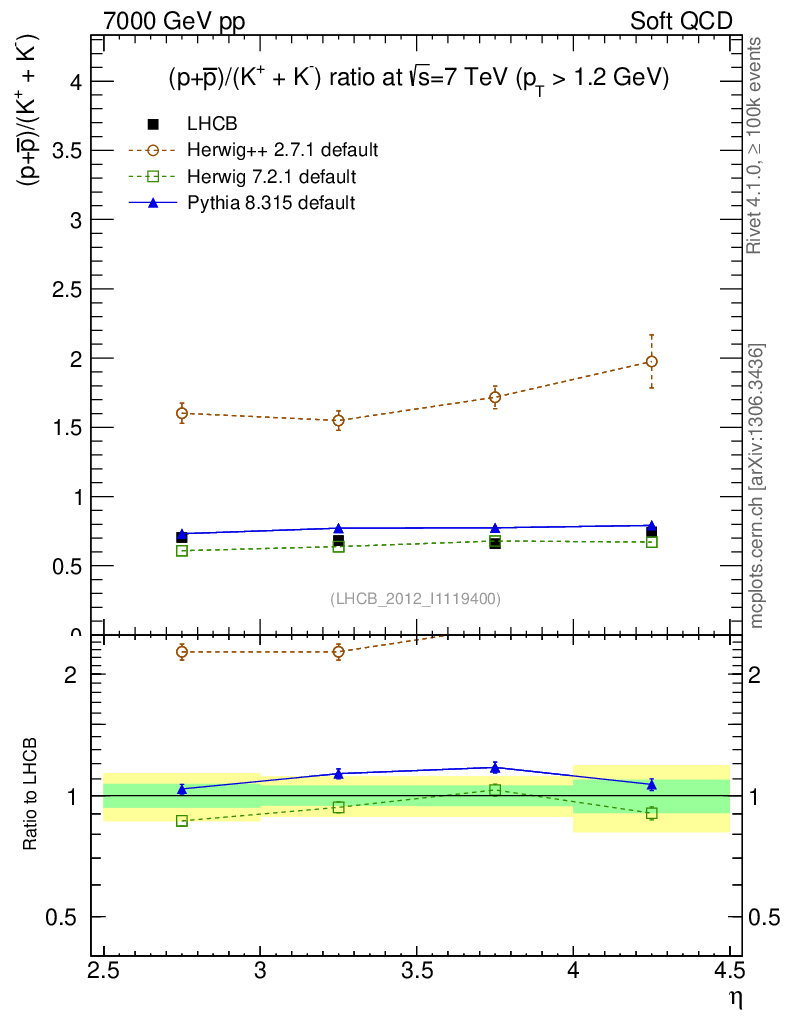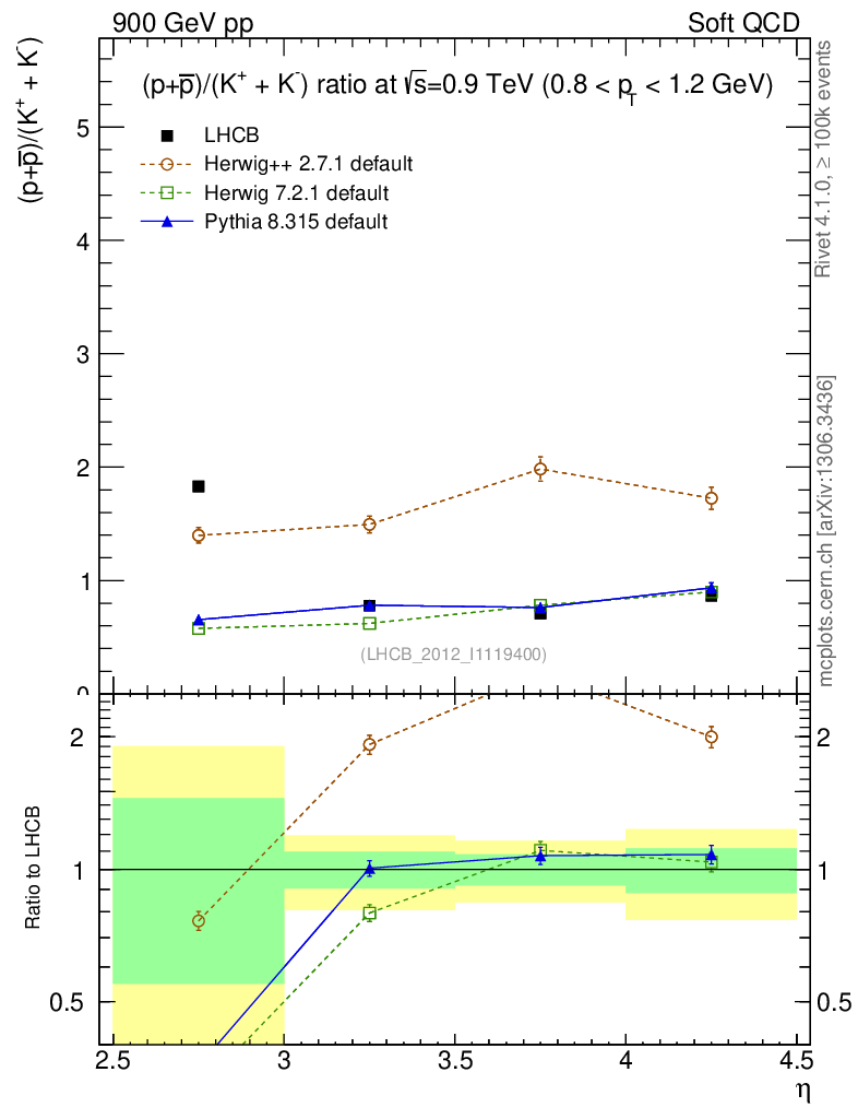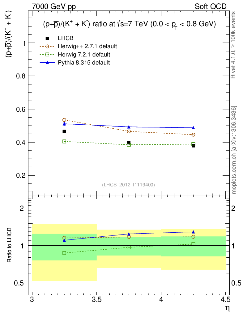 Soft QCD (inelastic) : Identified Particles : Ratios : (pbar+p)/(K-+K+) vs |y|