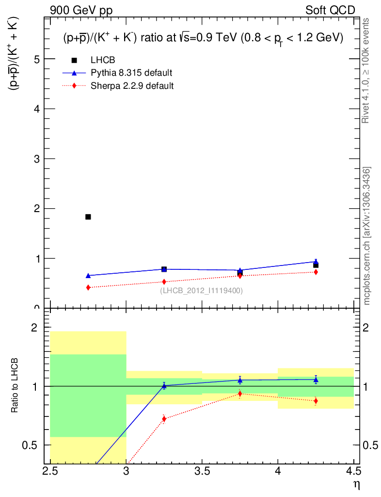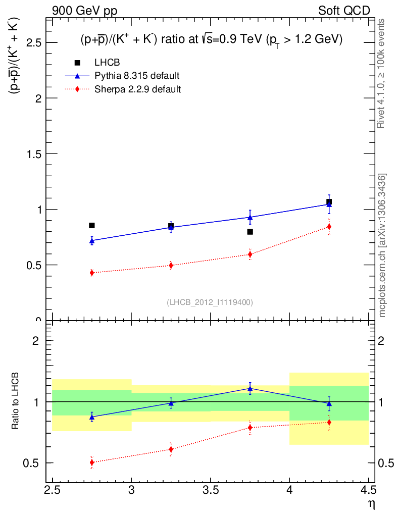 Soft QCD (inelastic) : Identified Particles : Ratios : (pbar+p)/(K-+K+) vs |y|