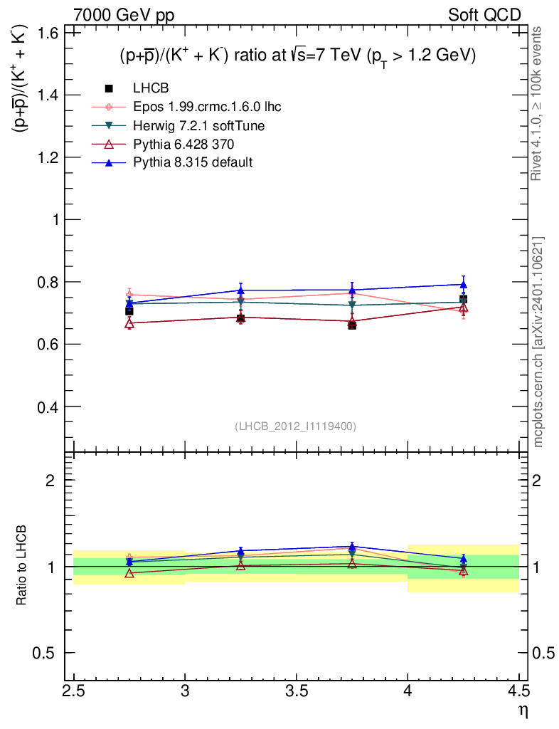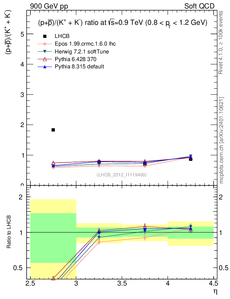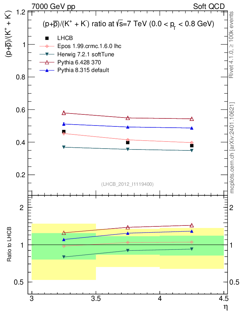 Soft QCD (inelastic) : Identified Particles : Ratios : (pbar+p)/(K-+K+) vs |y|