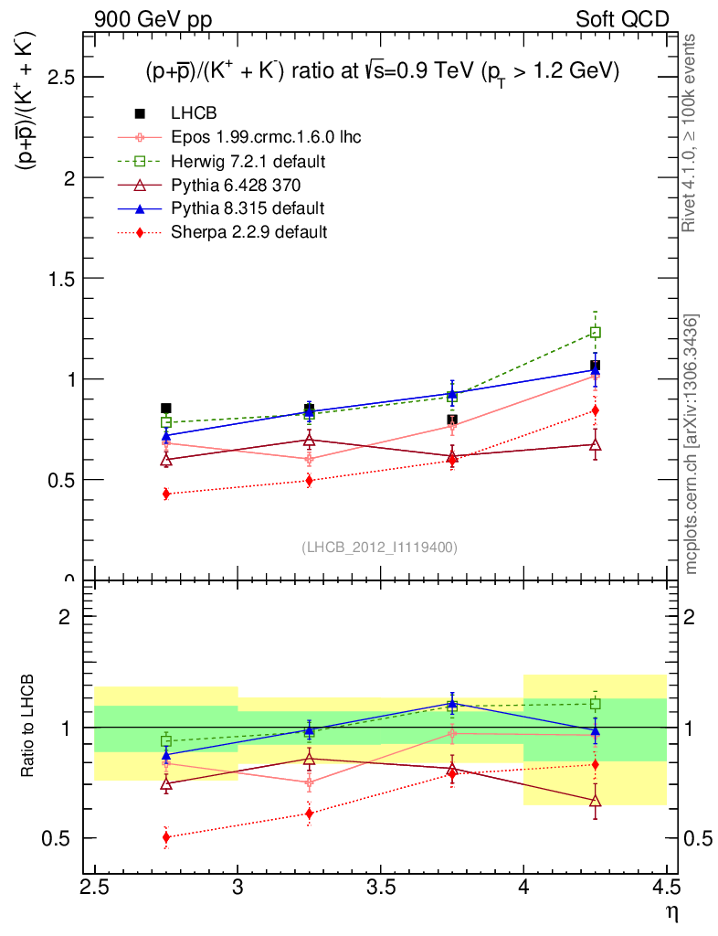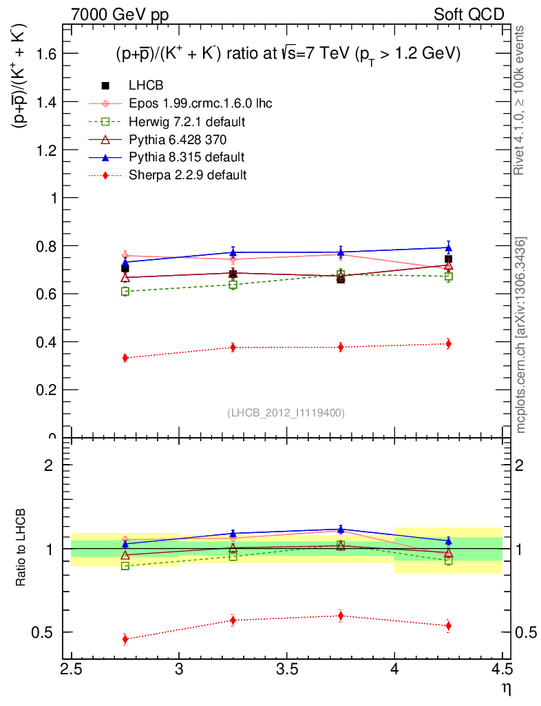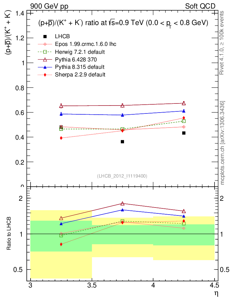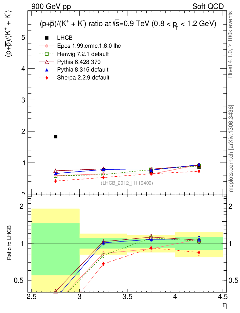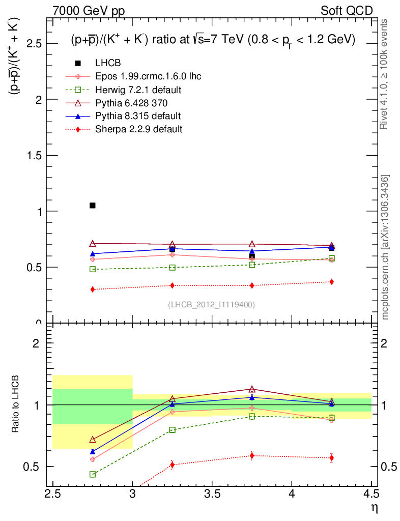 Soft QCD (inelastic) : Identified Particles : Ratios : (pbar+p)/(K-+K+) vs |y|
