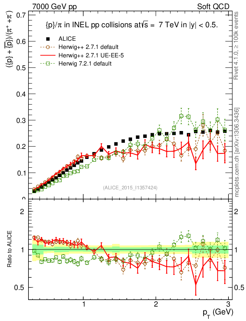 Soft QCD (inelastic) : Identified Particles : Ratios : (pbar+p)/(π-+π+) vs pT