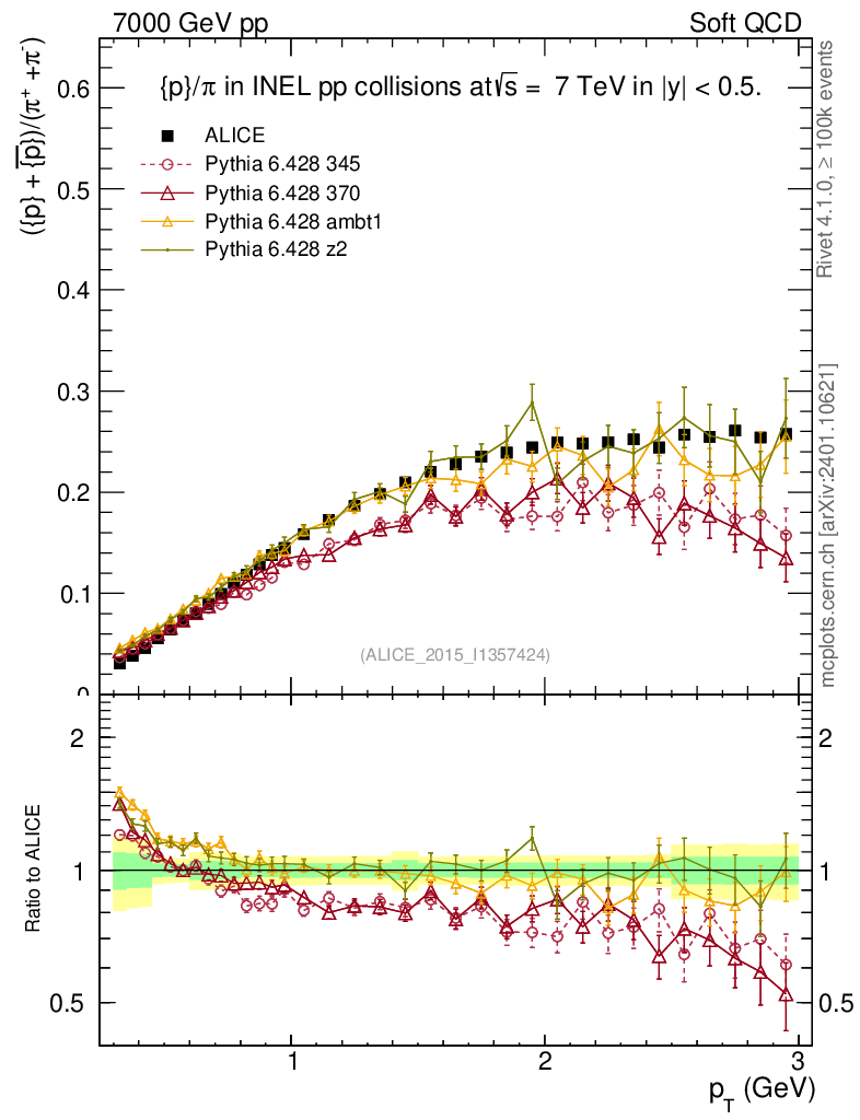 Soft QCD (inelastic) : Identified Particles : Ratios : (pbar+p)/(π-+π+) vs pT
