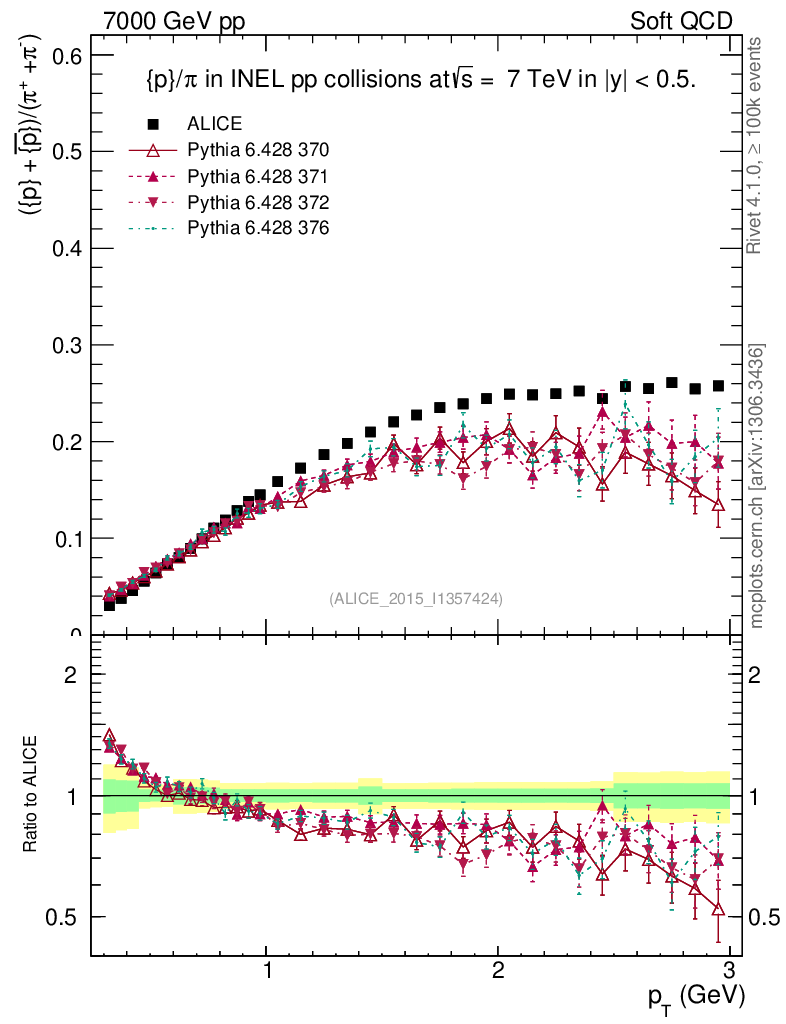 Soft QCD (inelastic) : Identified Particles : Ratios : (pbar+p)/(π-+π+) vs pT