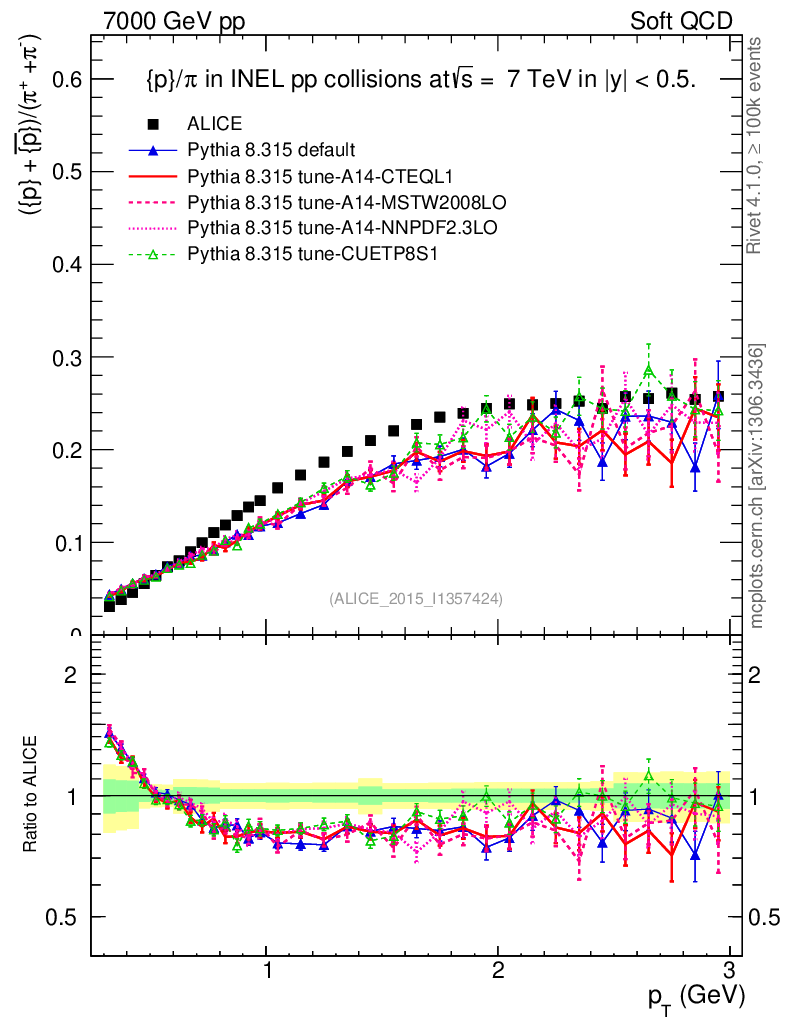 Soft QCD (inelastic) : Identified Particles : Ratios : (pbar+p)/(π-+π+) vs pT