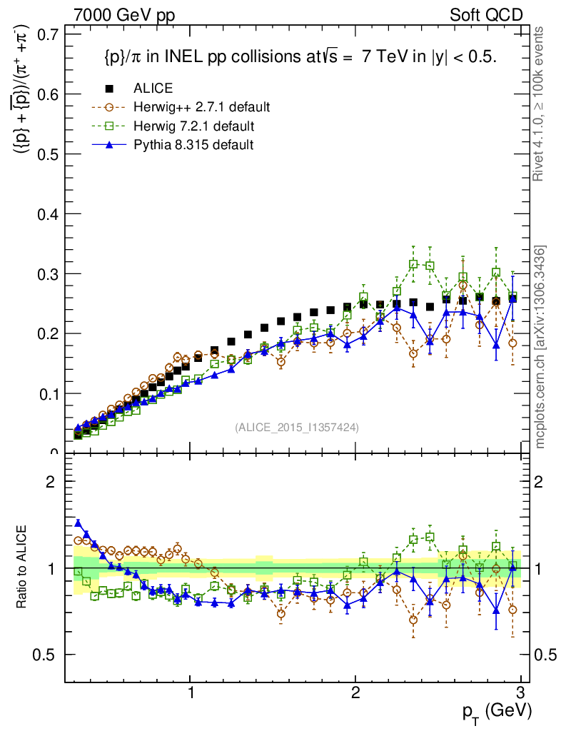 Soft QCD (inelastic) : Identified Particles : Ratios : (pbar+p)/(π-+π+) vs pT