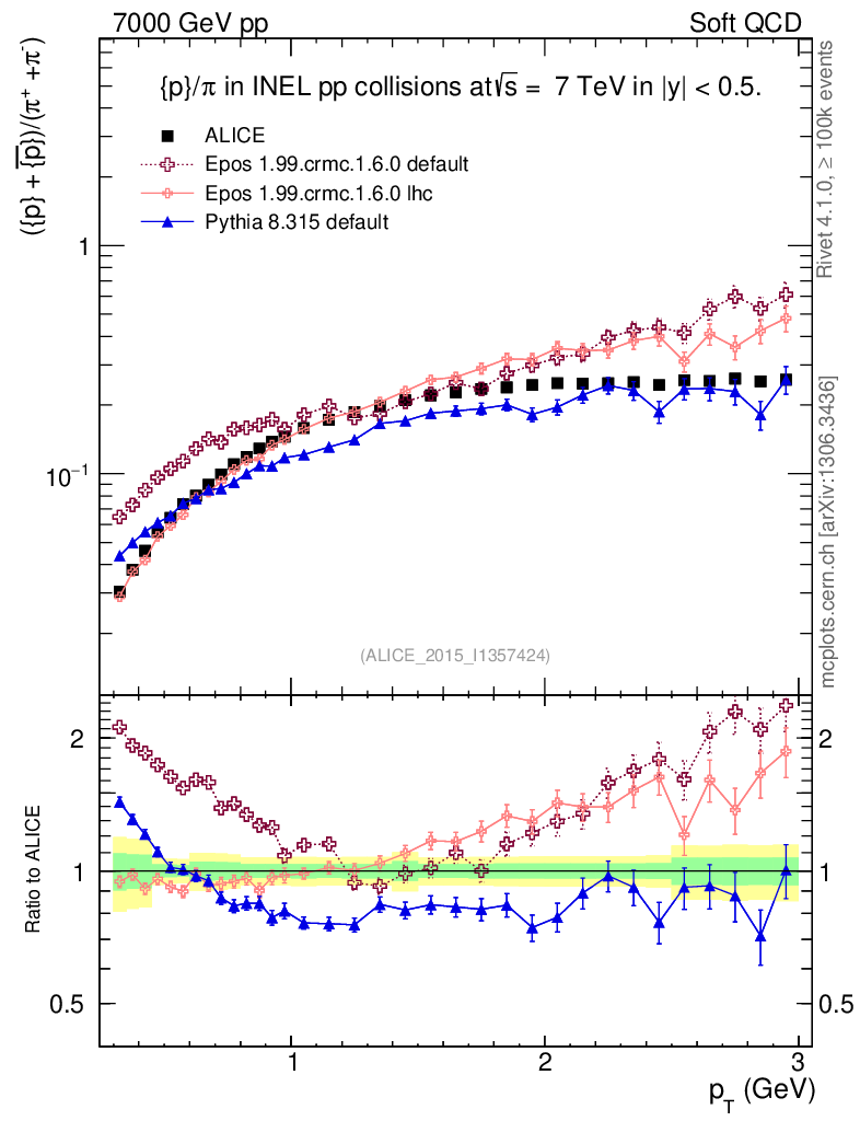 Soft QCD (inelastic) : Identified Particles : Ratios : (pbar+p)/(π-+π+) vs pT