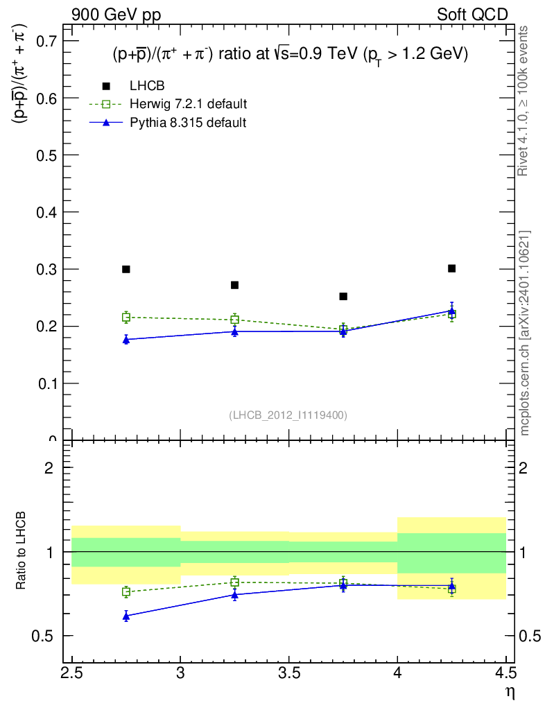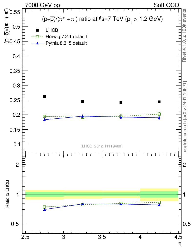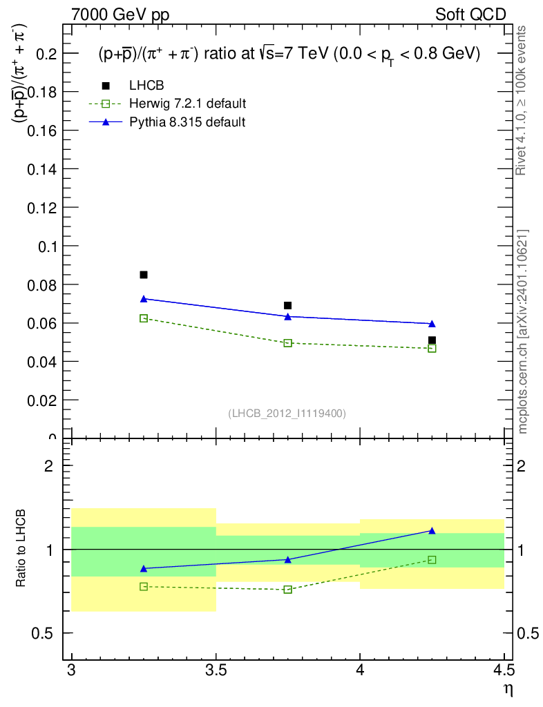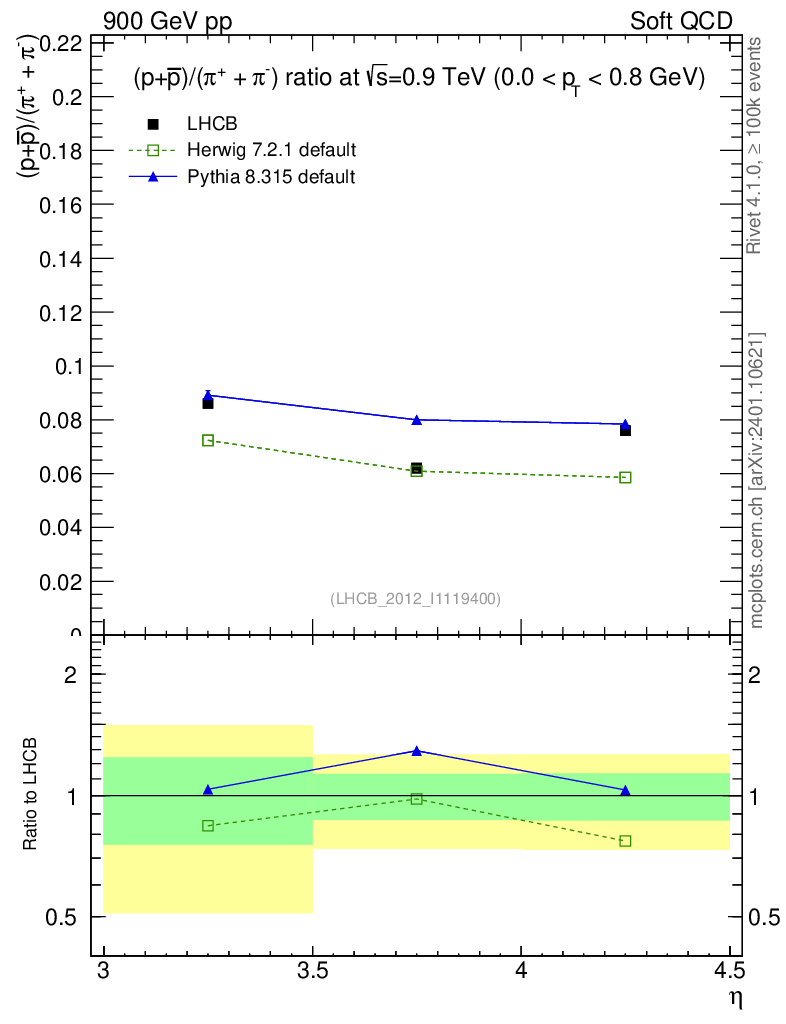 Soft QCD (inelastic) : Identified Particles : Ratios : (pbar+p)/(π-+π+) vs |y|