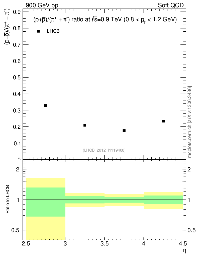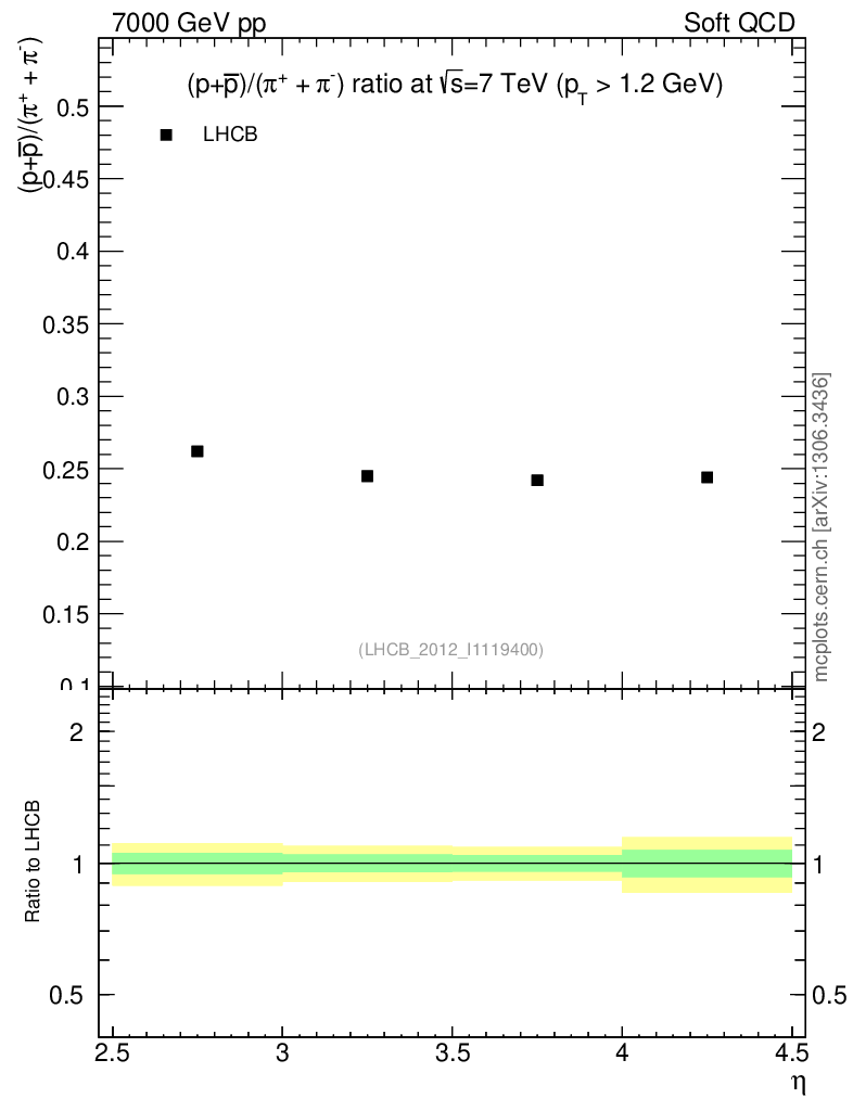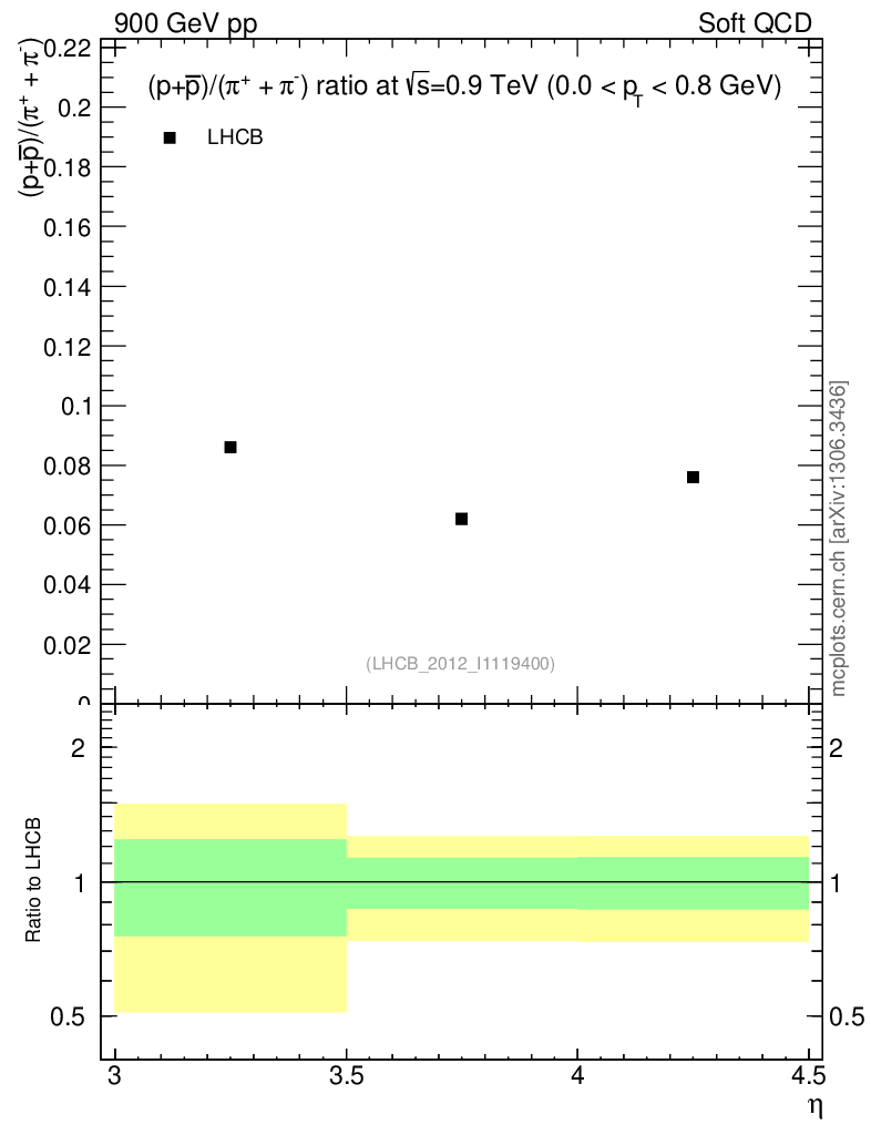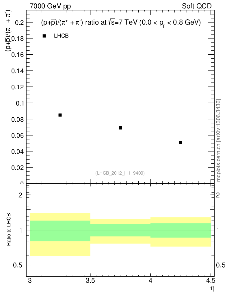 Soft QCD (inelastic) : Identified Particles : Ratios : (pbar+p)/(π-+π+) vs |y|
