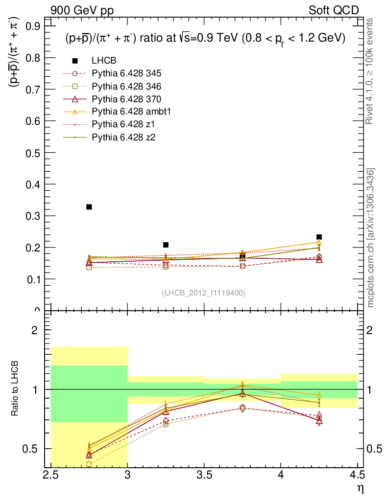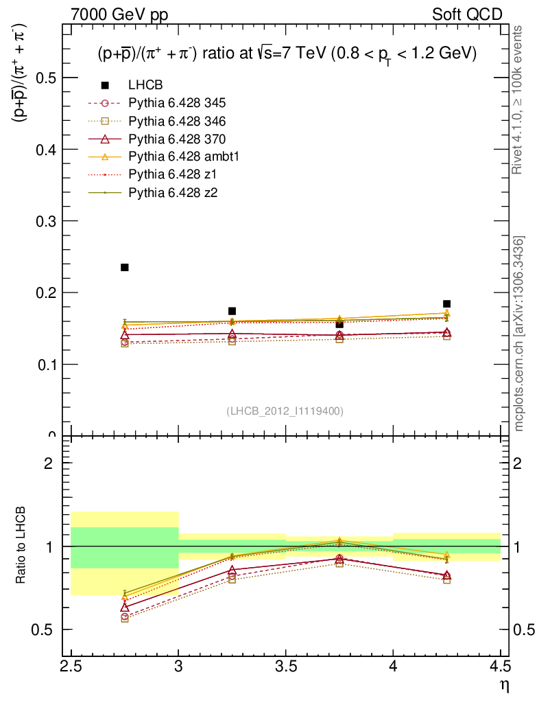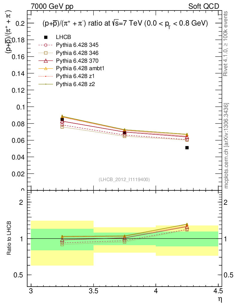 Soft QCD (inelastic) : Identified Particles : Ratios : (pbar+p)/(π-+π+) vs |y|