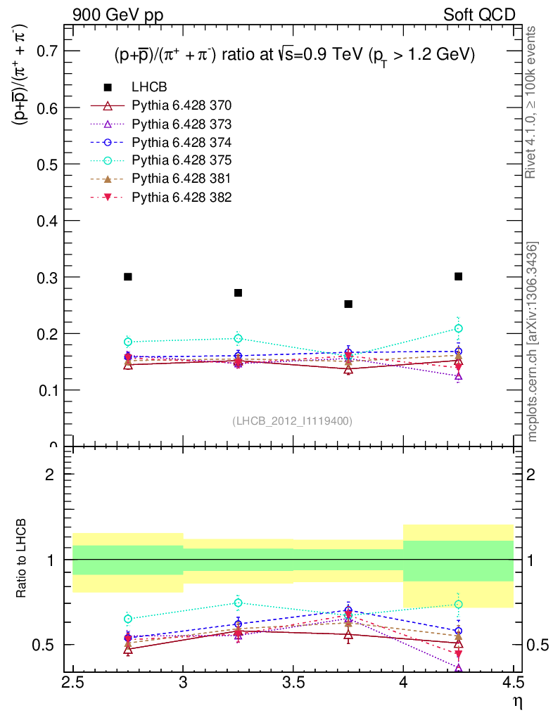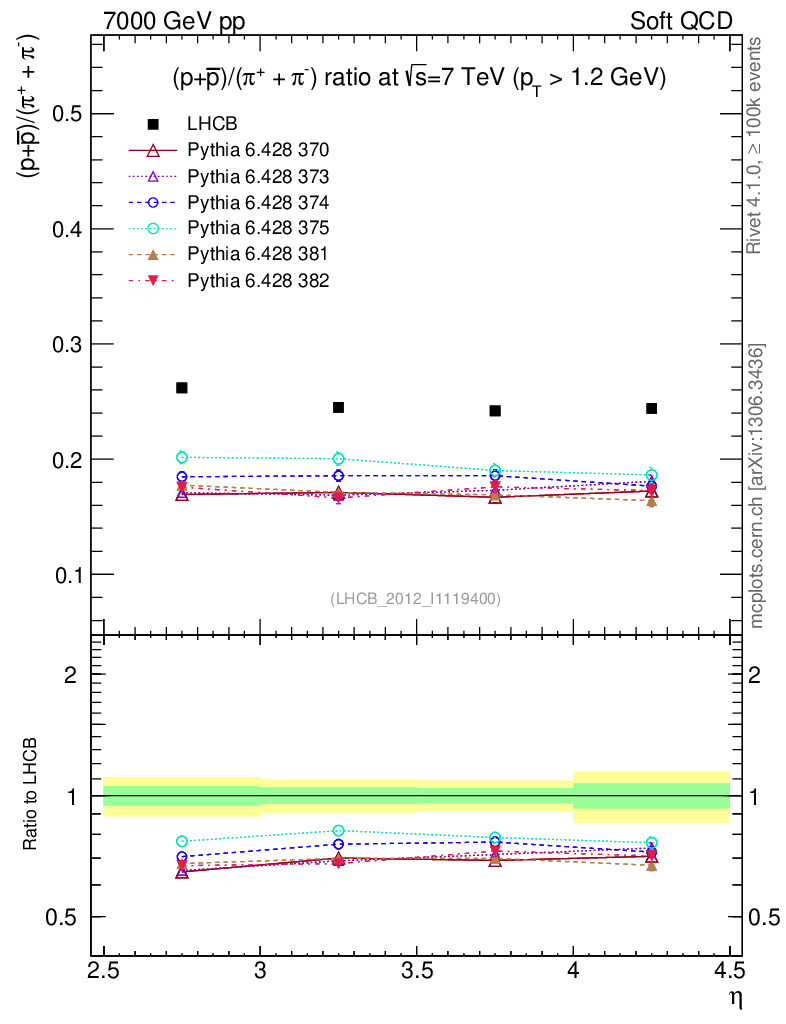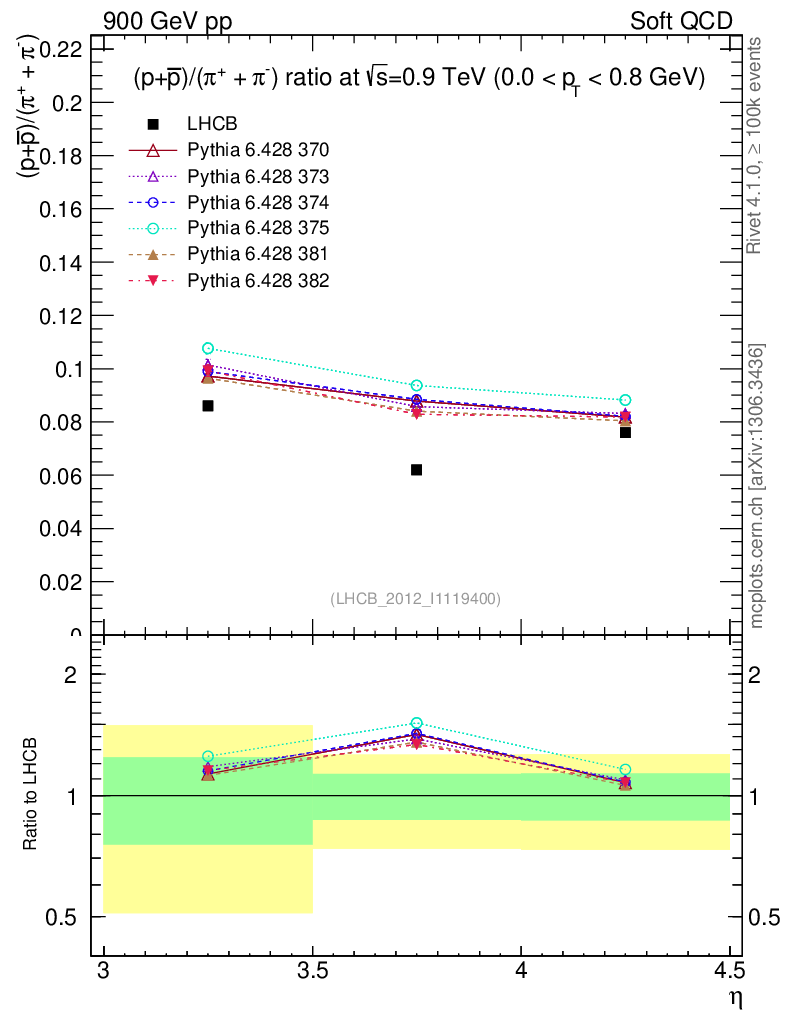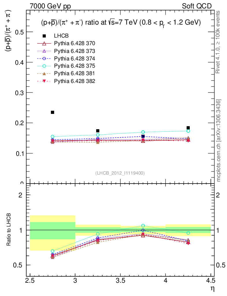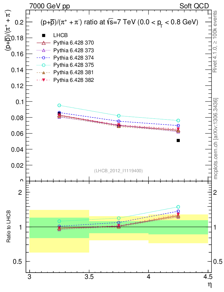 Soft QCD (inelastic) : Identified Particles : Ratios : (pbar+p)/(π-+π+) vs |y|